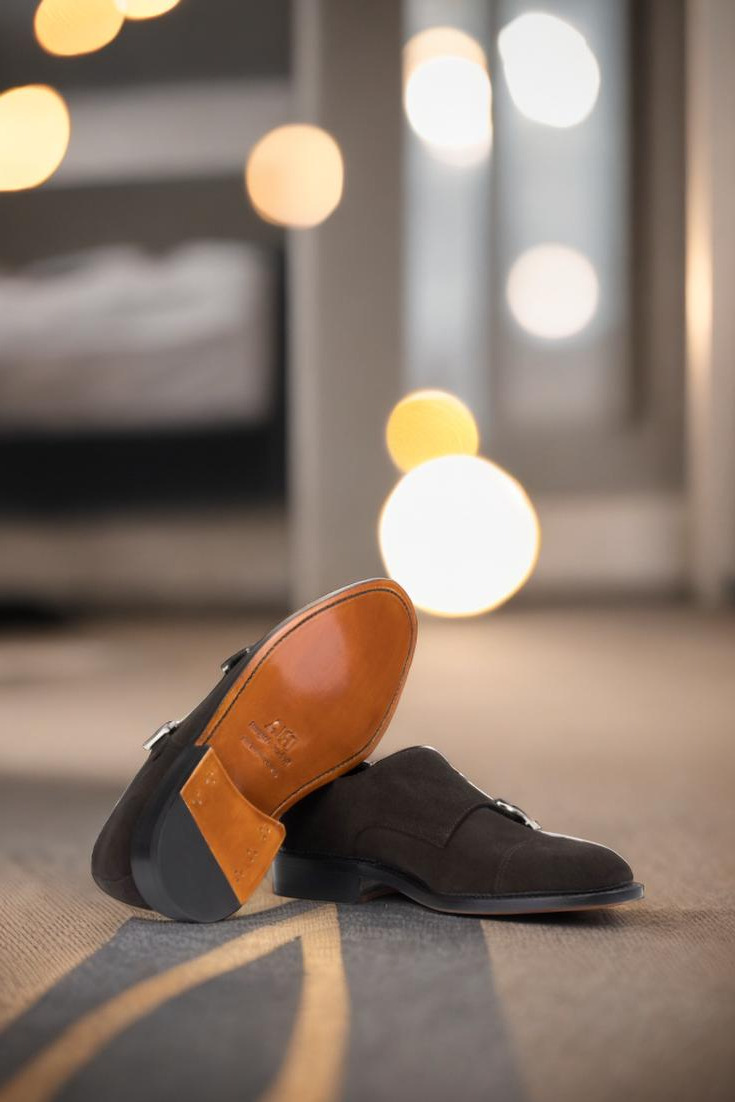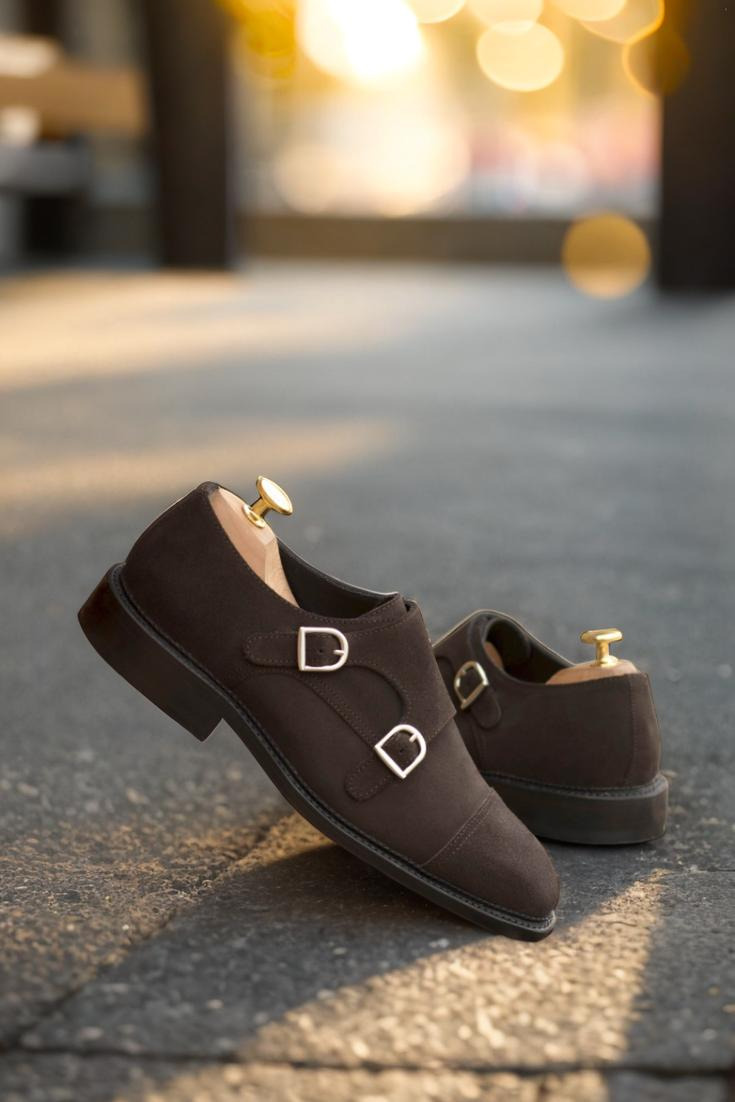 Feast your eyes on the dark brown luxe suede that covers the toe cap, vamp, inner quarter, outer quarter, and back. Its velvety texture adds a touch of opulence to your ensemble, leaving onlookers in awe. But the beauty doesn’t stop there. The rounded nickel buckles bring a modern twist to this classic design, elevating your fashion game to unprecedented heights.