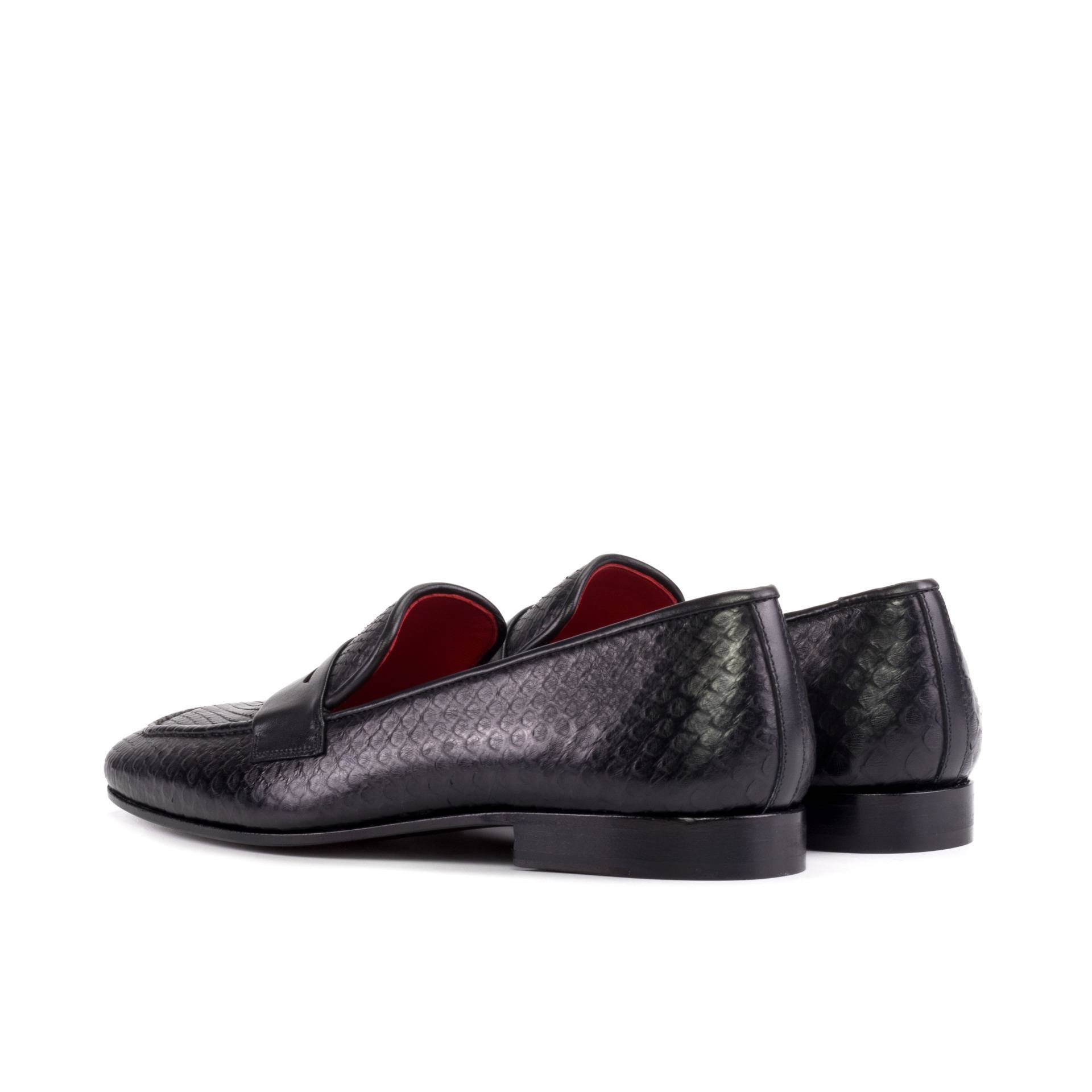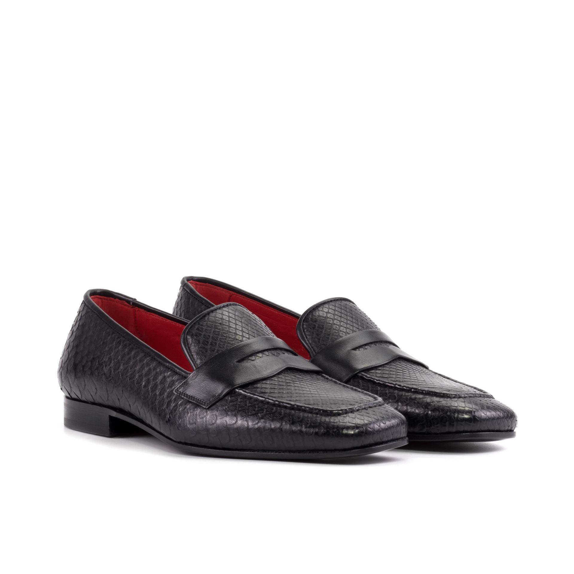 Step into luxurious comfort with The Pulaski Rd. Slipper No. 5783. These sophisticated slippers feature a stunning black genuine python upper with a black leather mask and black painted calf trim. The red calf leather lining creates a smooth, luxurious interior that pampers your feet, while the black hand-painted leather sole adds motion and stability as you move. Whether you’re strolling through the streets of downtown or relaxing at home, these slippers provide the perfect combination of style and comfort. With its sleek silhouette and refined materials, The Pulaski Rd. Slipper No. 5783 is the perfect accessory to add a touch of luxe to any outfit. Step out in style and sophistication with The Pulaski Rd. Slipper No. 5783.