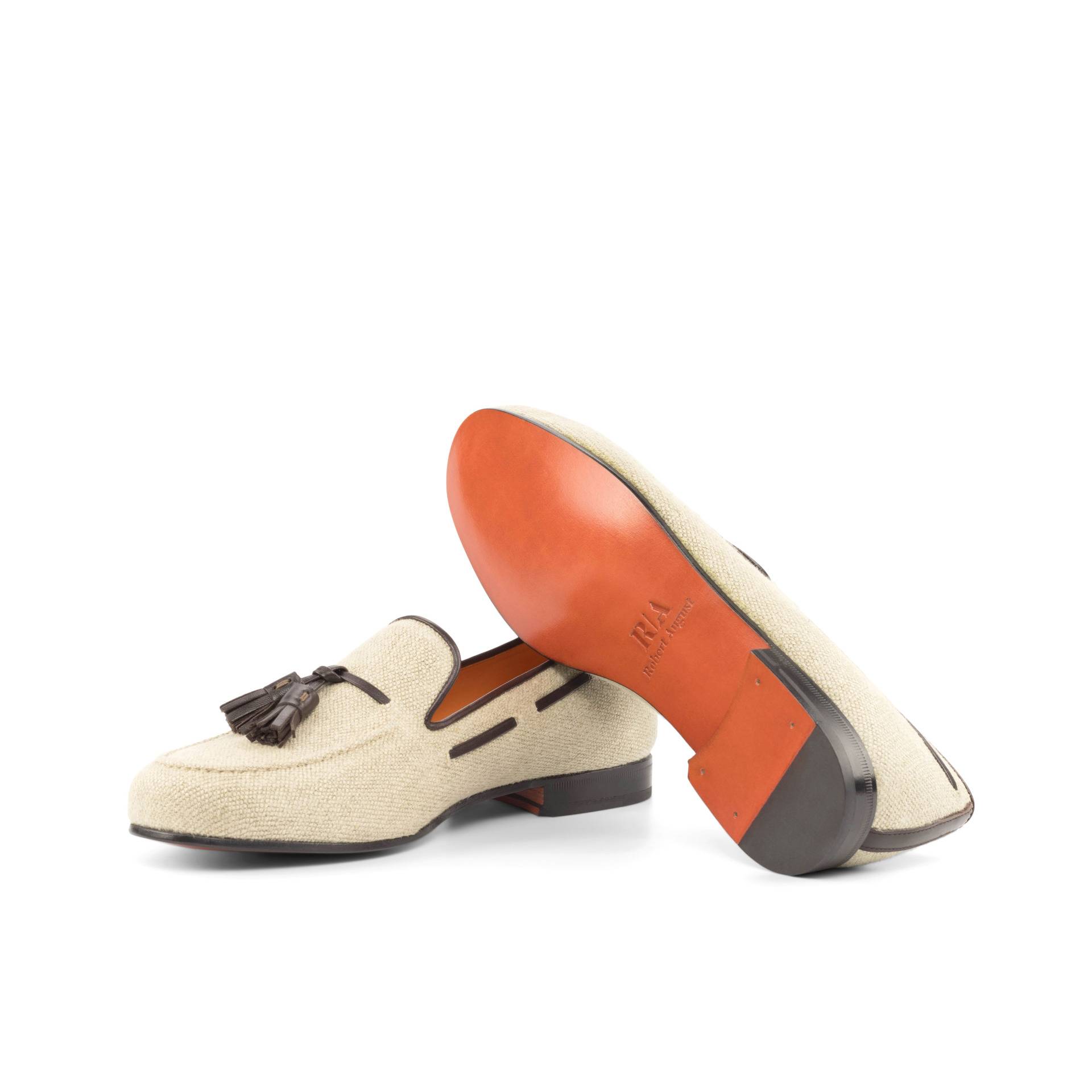 Welcome to the world of luxury: introducing the Cermak Rd. Wellington Slipper No. 8003. Crafted with its wearer in mind, this stunning shoe is sure to make a statement wherever you go! Its simple design and classic style will add a touch of timeless sophistication and quality craftsmanship to your wardrobe. It features an upper of ice linen and brown nappa leather, accented by trim made of soft brown nappa leather. Inside, enjoy a luxurious lining of orange calf leather for complete comfort around the clock. Underfoot, a hand-painted orange leather sole ensures that each step is both secure and stylish as you stride across any surface with ease. Experience it all when you slip into the Cermak Rd. Wellington Slipper No. 8003; don’t just take our word for it – give it a try today!