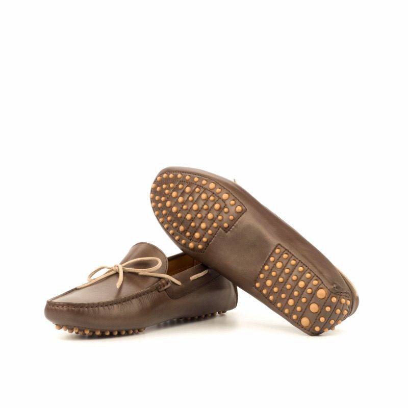Introducing the Racine Ave. Driving Moccasin No. 3772 from Robert August, the perfect combination of style and functionality. Handcrafted in Spain, these shoes are designed with the modern man in mind – someone who values efficiency and directness. The dark brown nappa leather uppers exude sophistication, while the camel suede bow adds a touch of elegance. To ensure durability and comfort, the shoes are reinforced with brown stitching and lined with brown calf leather.