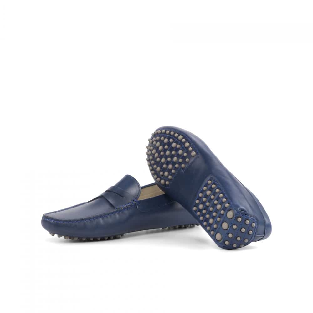 Get ready to hit the road in style with The Racine Ave. Driving Moccasin No. 4486 from Robert August. Crafted with the finest materials, these driving moccasins are the epitome of luxury and comfort. Made with navy blue nappa leather uppers and mask, these shoes boast a sleek and timeless look. The blue stitching adds a subtle touch of detail, giving these moccasins a sophisticated edge.