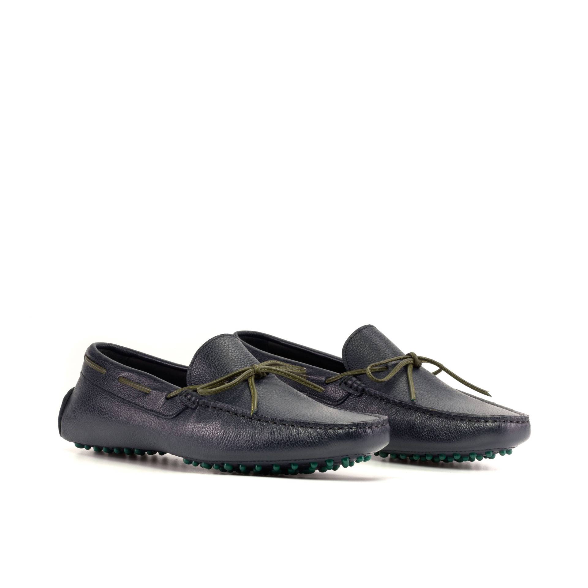 Crafted with precision and attention to detail, the upper of this driving moccasin features a luxurious navy blue full grain leather. Not only does this add a touch of sophistication, but it also promises durability and long-lasting wear. The Navy Blue Full Grain Leather base and collar continue the sleek and polished look, while the contrasting black stitching adds a subtle pop of style.