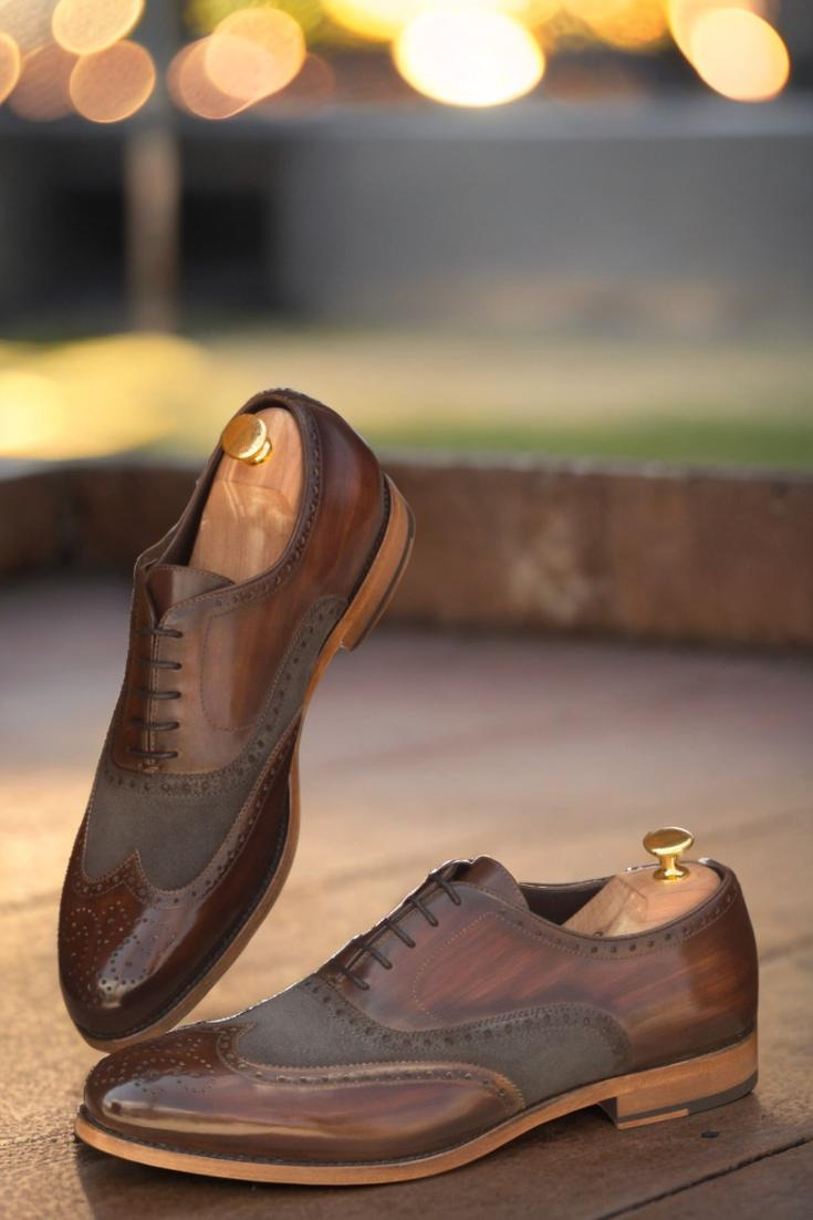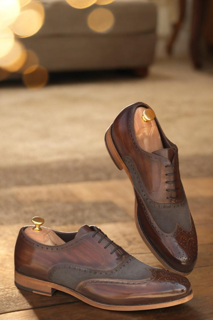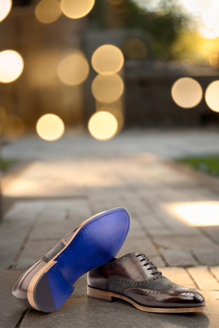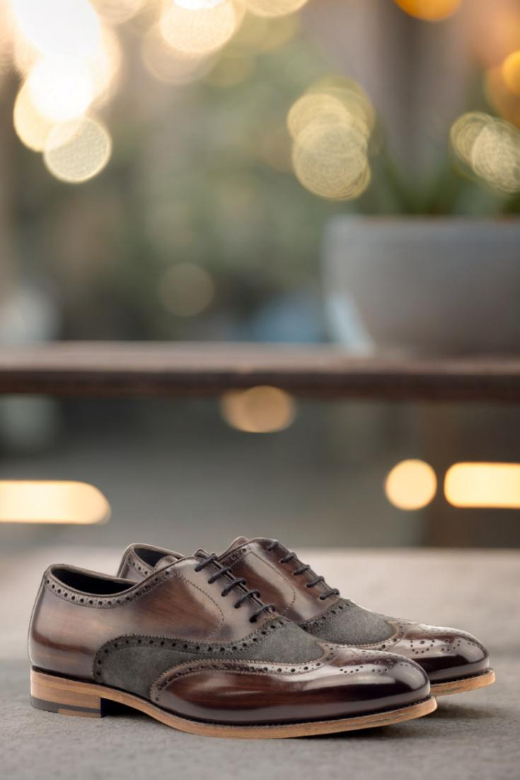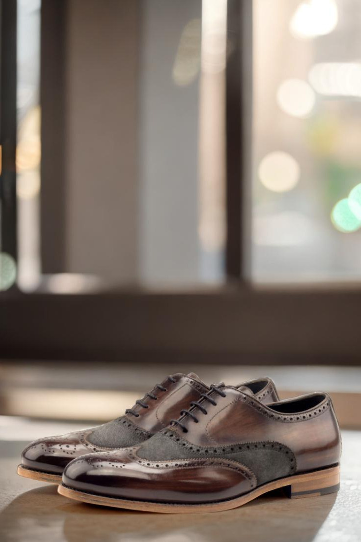 Starting from the top, the uppers of this shoe are made from luxurious Italian Calf Leather with a stunning Brown Hand Patina and Grey Luxe Suede detailing. The result is a one-of-a-kind look that exudes class and sophistication. And for a sleek finish, the Patina Style is kept Original to maintain the perfect balance of traditional and modern.