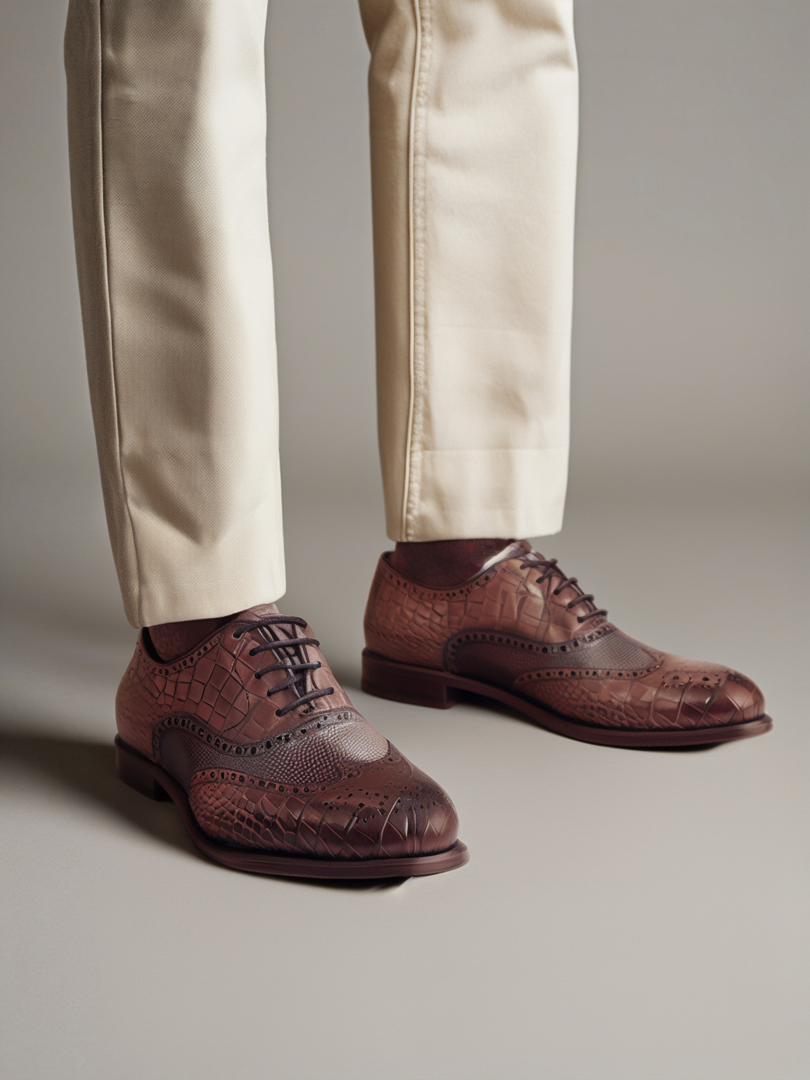 Dressed in a sleek dark brown croco embossed calf leather, this shoe exudes elegance and refinement. The wingtip design adds a touch of sophistication, while the pebble grain leather on the vamp, tongue, and back adds a subtle texture that sets this shoe apart.