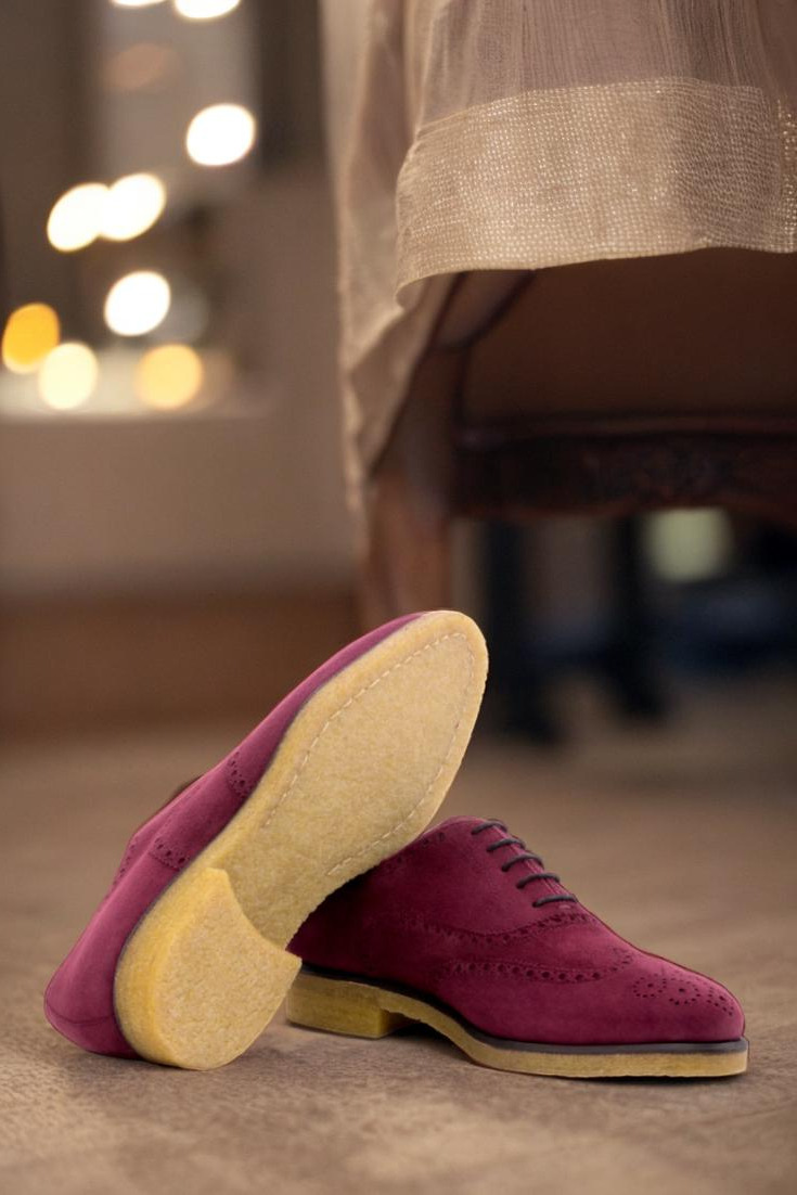 In conclusion, The Devon Ave. Full Brogue No. 3571 showcases the epitome of style, comfort, and craftsmanship. With its luxurious Wine Kid Suede uppers, round-black laces, Black Calf Leather lining, and Honey-Natural Rubber Crepe Sole, this shoe is a true work of art. Step into a world of elegance and sophistication, where every stride exudes confidence and refinement. Elevate your style with The Devon Ave. Full Brogue No. 3571 – the shoe that sets you apart from the rest.