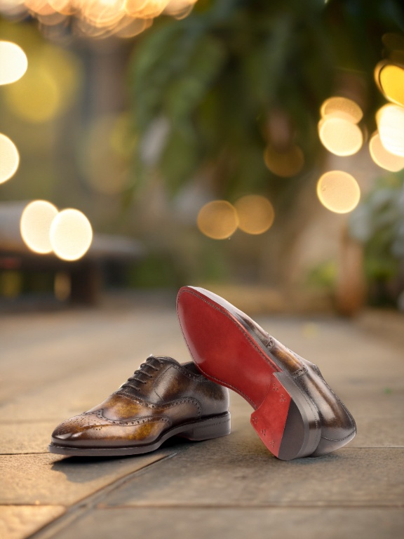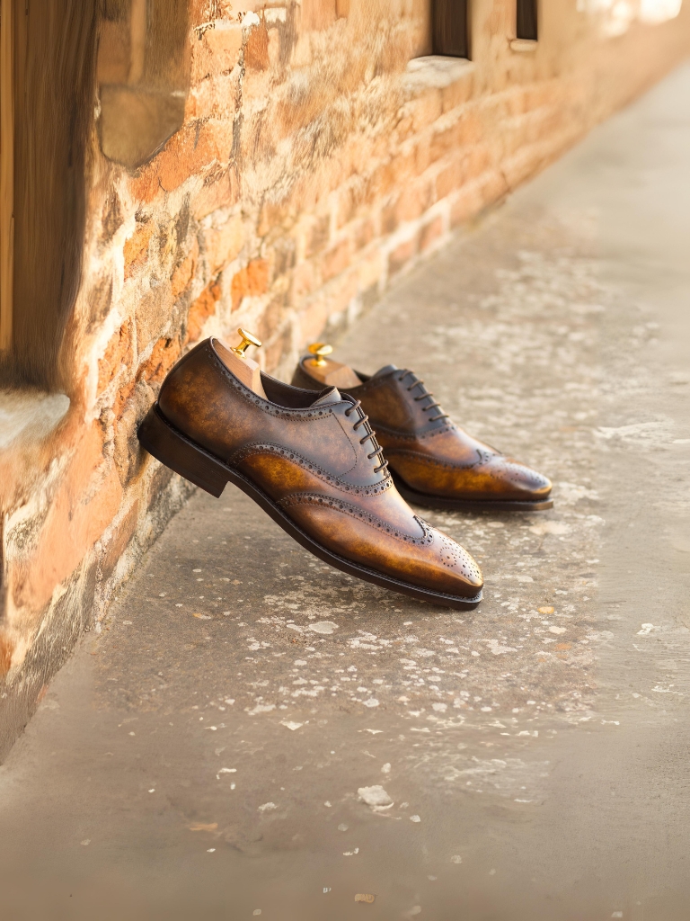 The upper of the shoe features luxurious Italian Calf Leather with a unique Brown and Cognac Hand Patina Finish. What sets this shoe apart is the Patina Style, giving it a marbled effect that adds a touch of boldness to its classic design.