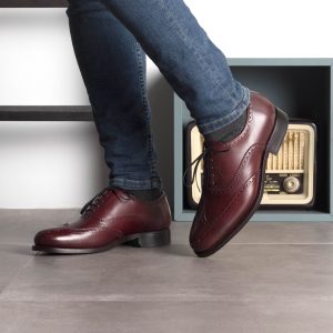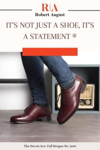 Make a statement with the Devon Ave. Full Brogue No. 5695EX from Robert August. Embodying stylishness and sophistication, this handmade oxford is perfect for any occasion. The burgundy box calf uppers provide a unique texture and finish that will stand out in any crowd. The brown calf lining ensures you stay comfortable while looking your best. Burgundy-round laces add another burst of color to this design, plus they make sure it stays securely on your feet. Plus, the dark red hand-painted leather sole will provide superior cushioning and comfort with every step you take!