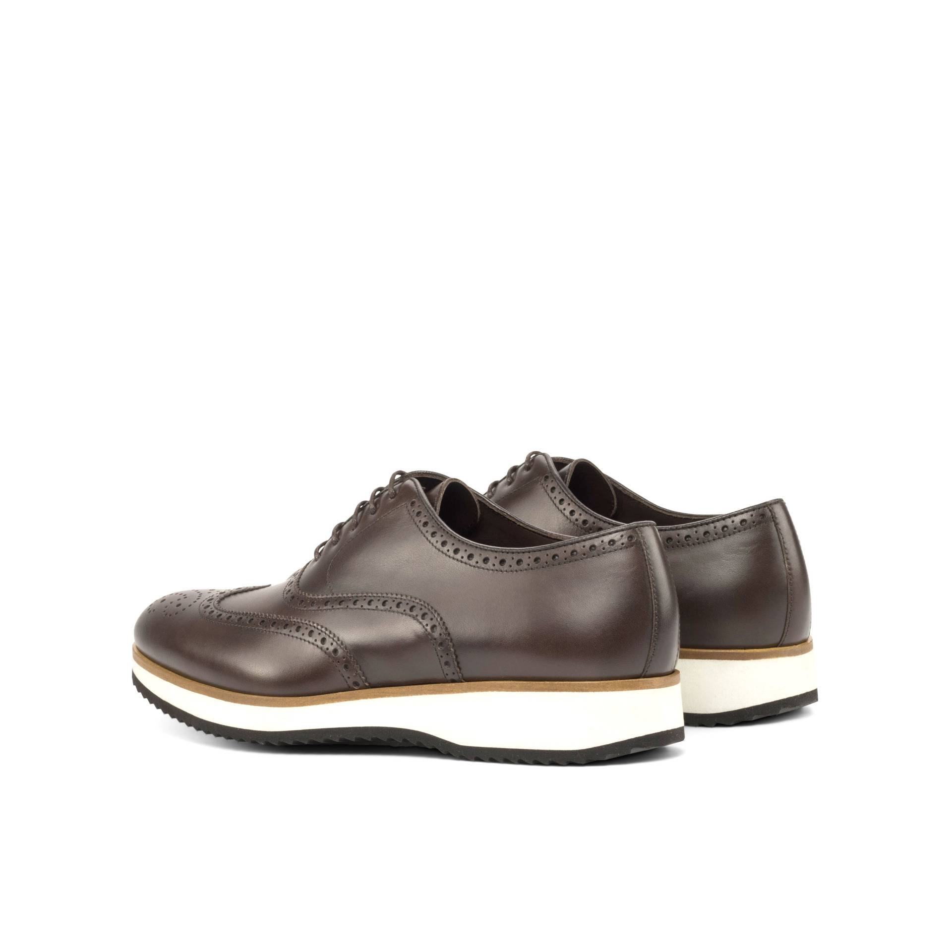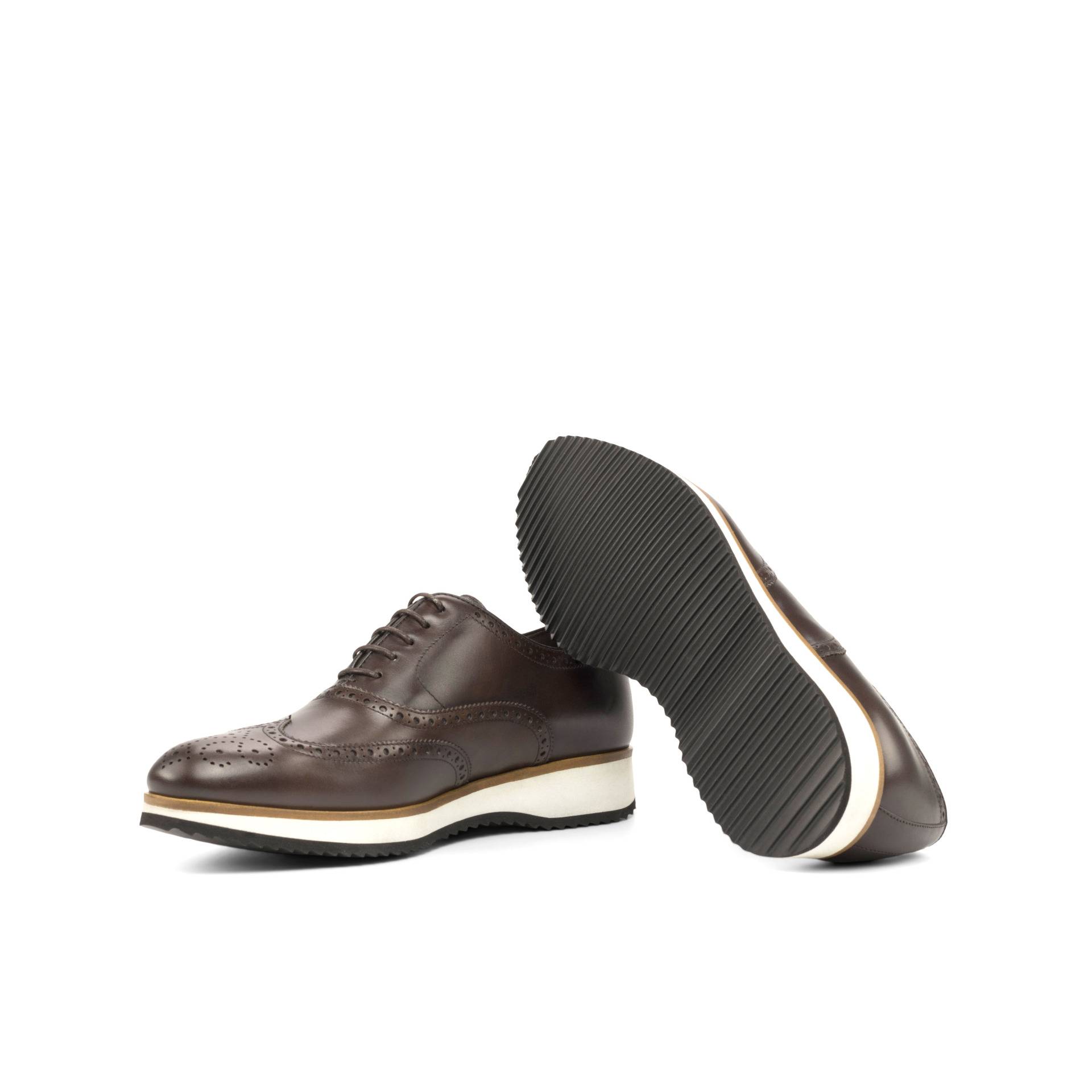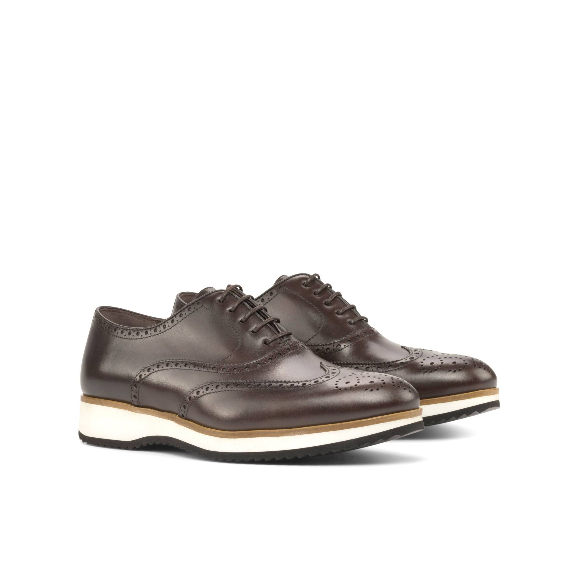 The uppers of these remarkable shoes are crafted from the finest dark brown painted calf leather. The rich, lustrous sheen of the leather adds a touch of exclusivity, while the timeless brogue detailing exudes a sense of refined charm. Every curve and perforation is created with utmost precision, a testament to the artisanal skill that goes into the making of each pair.