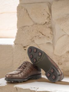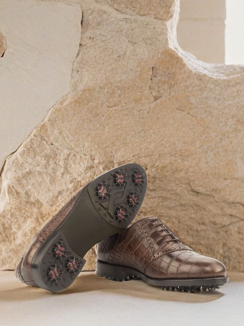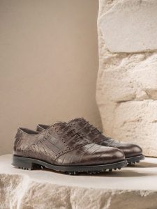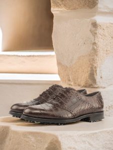 But don’t let the stylish exterior fool you – these shoes are designed for performance on the golf course. The Softspikes® cleats on the sole provide excellent traction and stability, allowing you to take your game to the next level. And the brown calf leather lining ensures that your feet stay comfortable and dry throughout your round.