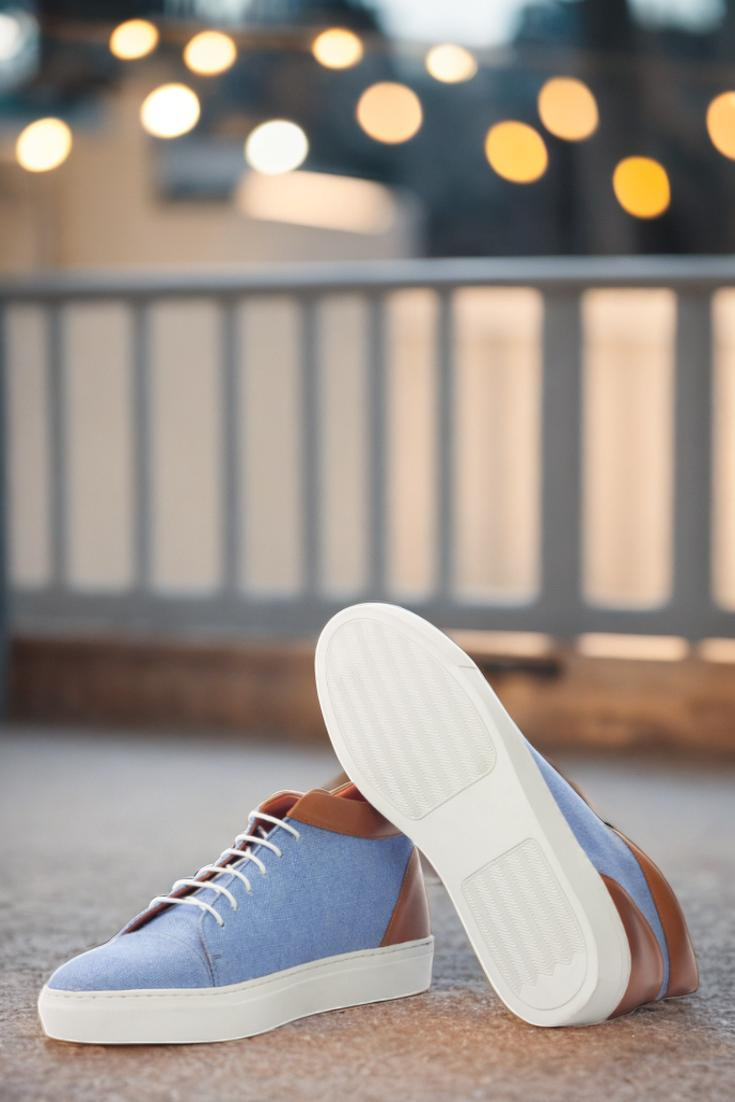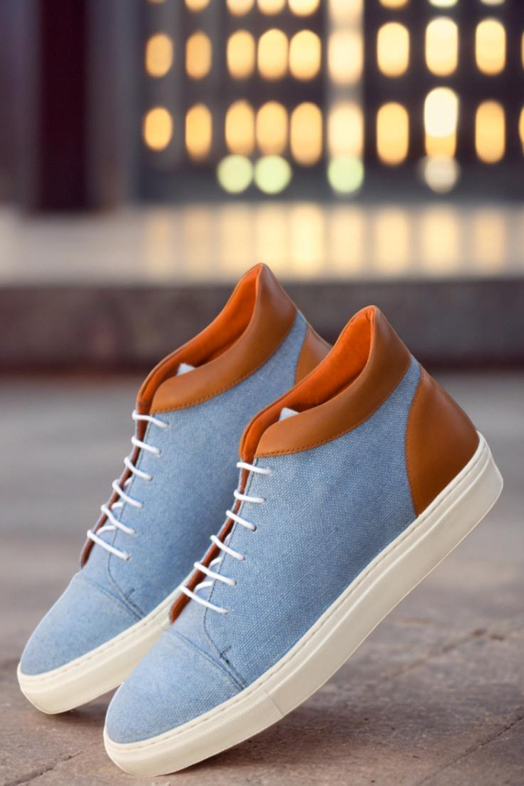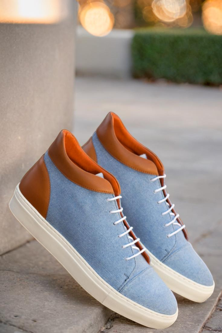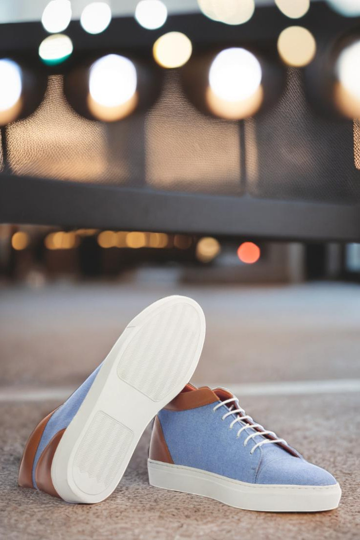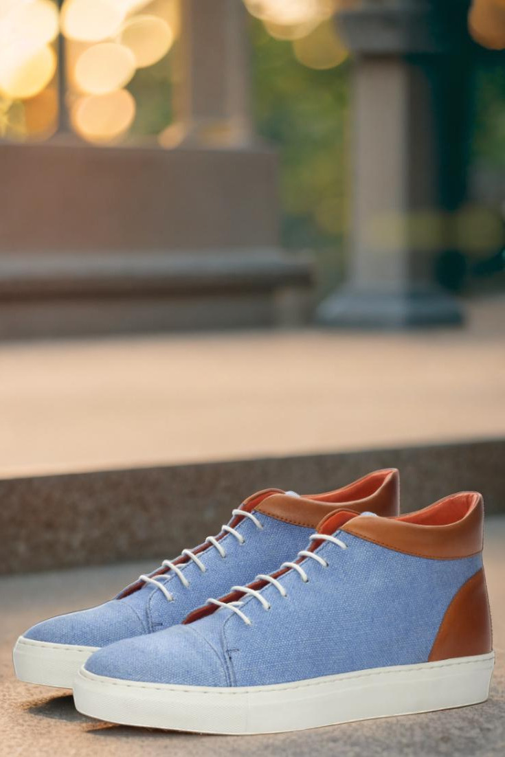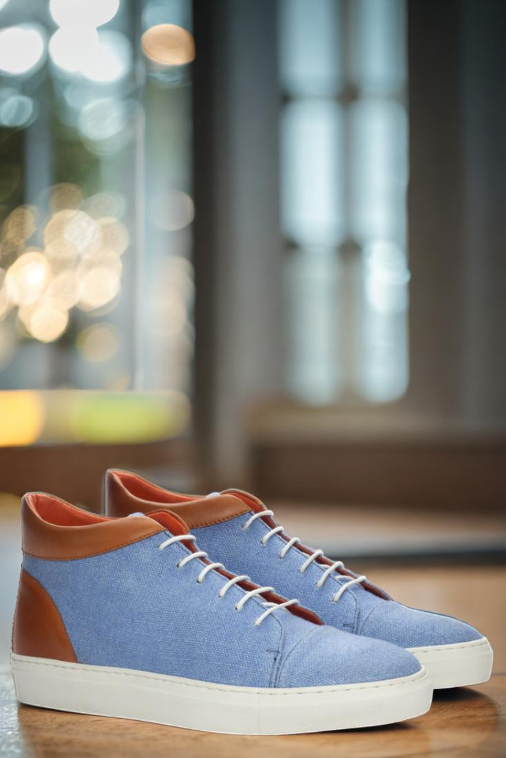 Crafted in Spain, the Argyle St. High Tops are designed with the finest materials. The uppers feature a unique combination of blue linen and cognac painted calf leather, providing a sleek and stylish look that will make heads turn. And to top it off, the crisp white laces add a touch of crispness to the overall design.