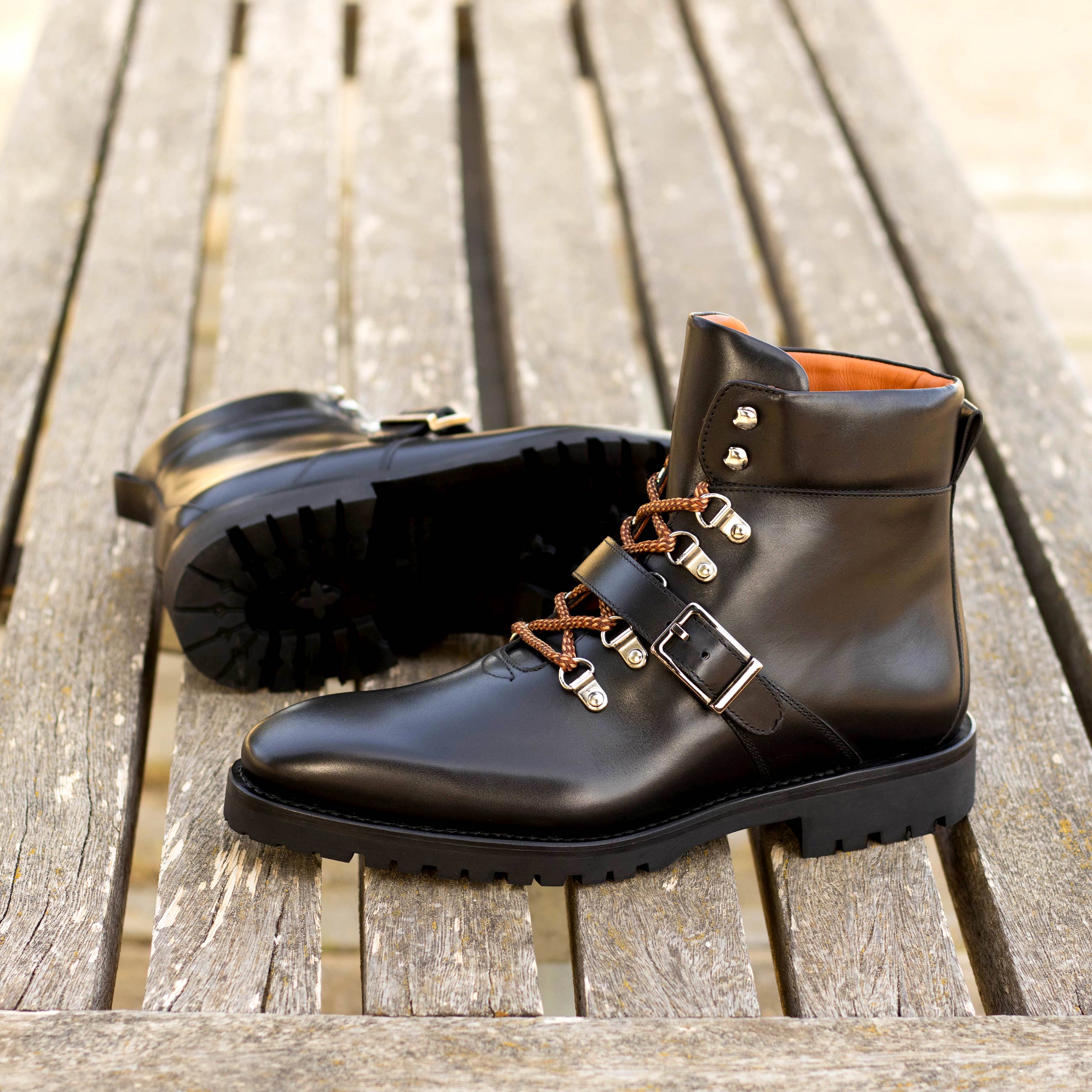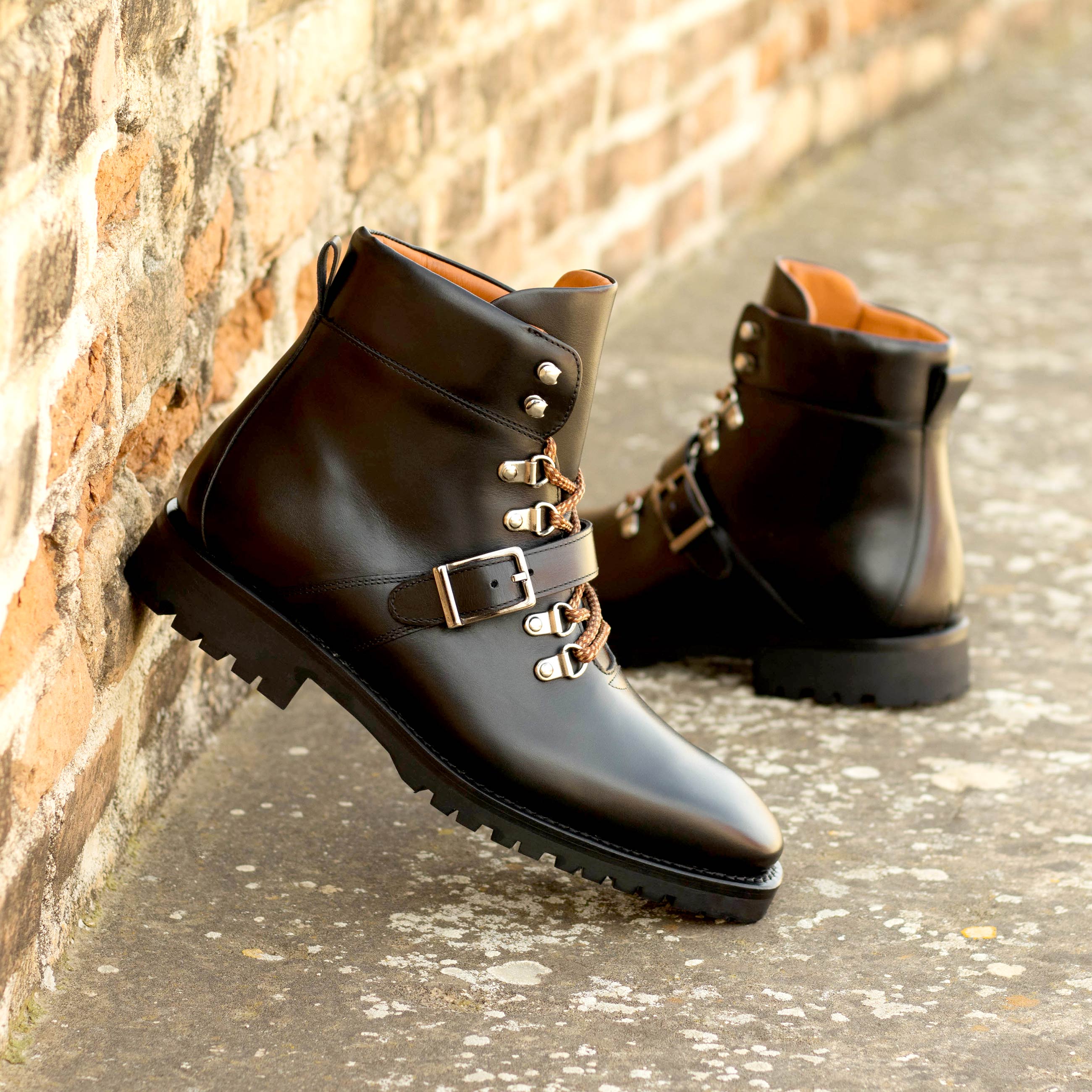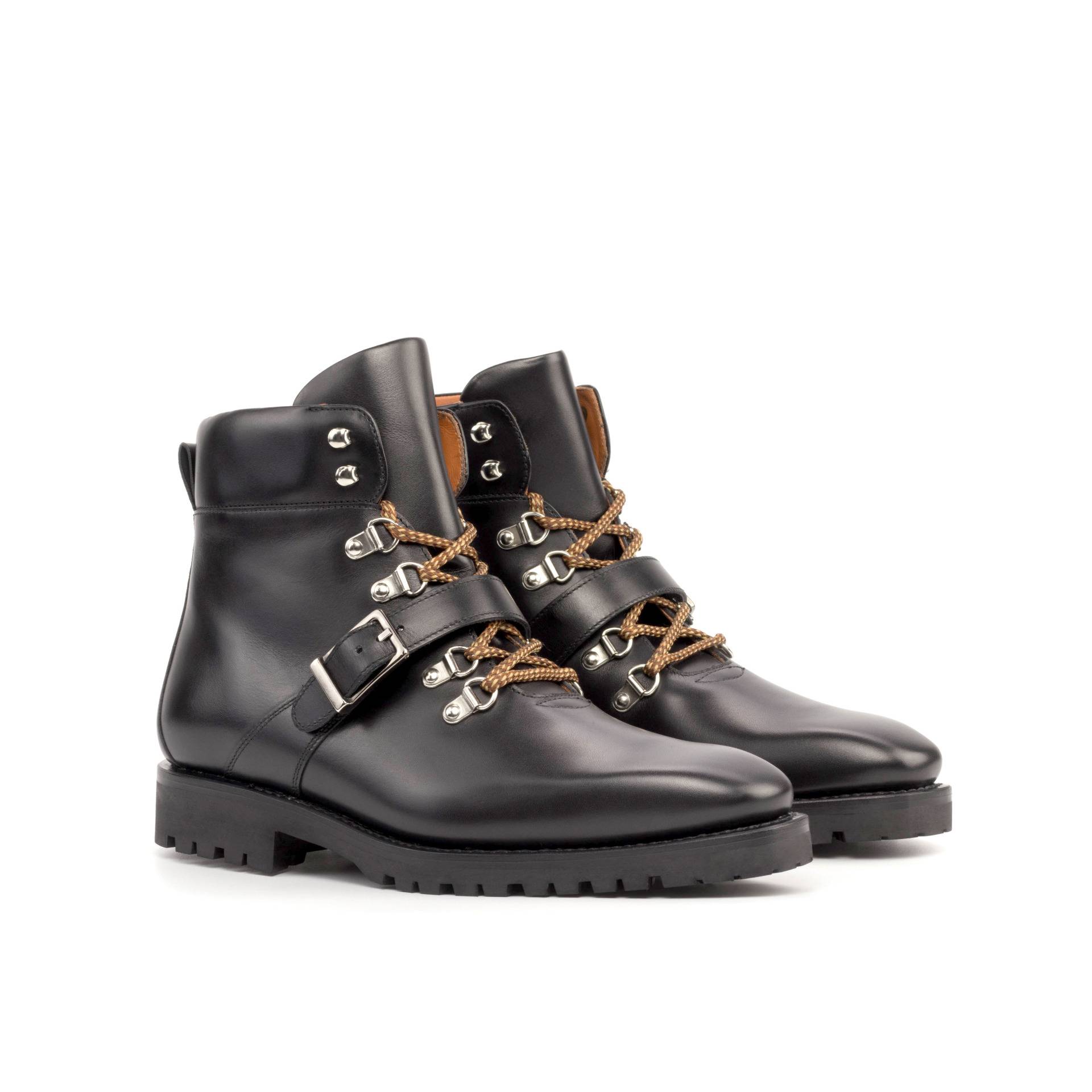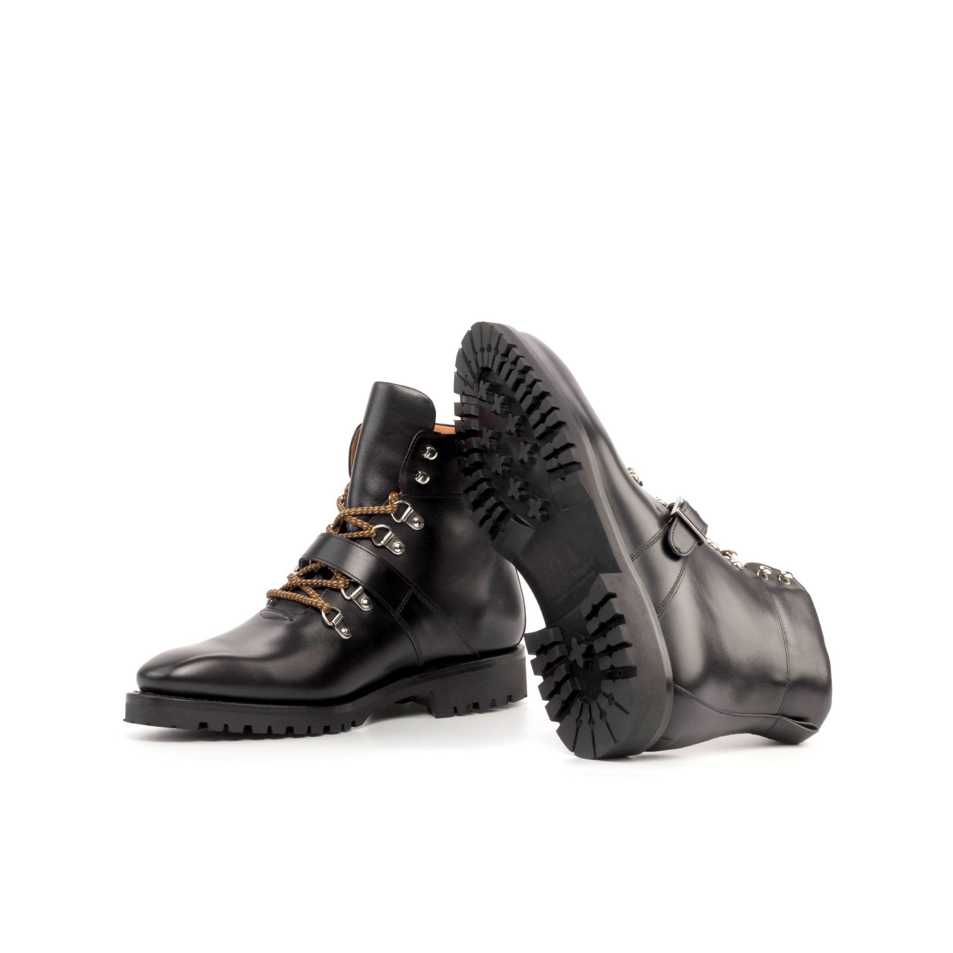 Create a style statement when you wear The Walton St. Hiking Boot No. 8058 from Robert August. Its sophisticated design helps give you an instantly stylish boost. Crafted from a black painted calf leather upper, these shoes offer a strong and hard-wearing construction that will stand the test of time, no matter where your adventures take you. Detailed with nickel eyelets and rust laces, this style fastens securely in place for an unbeatable feel on your feet. The orange calf leather lining provides exceptional comfort to ensure that your feet stay cosy all day long while the black rubber sole is lightweight yet supportive to keep you steady and stable on all kinds of rough surfaces. Step out in the height of fashion in The Walton St. Hiking Boot No 8058 from Robert August – your perfect companion for any outdoor excursion or urban adventure!