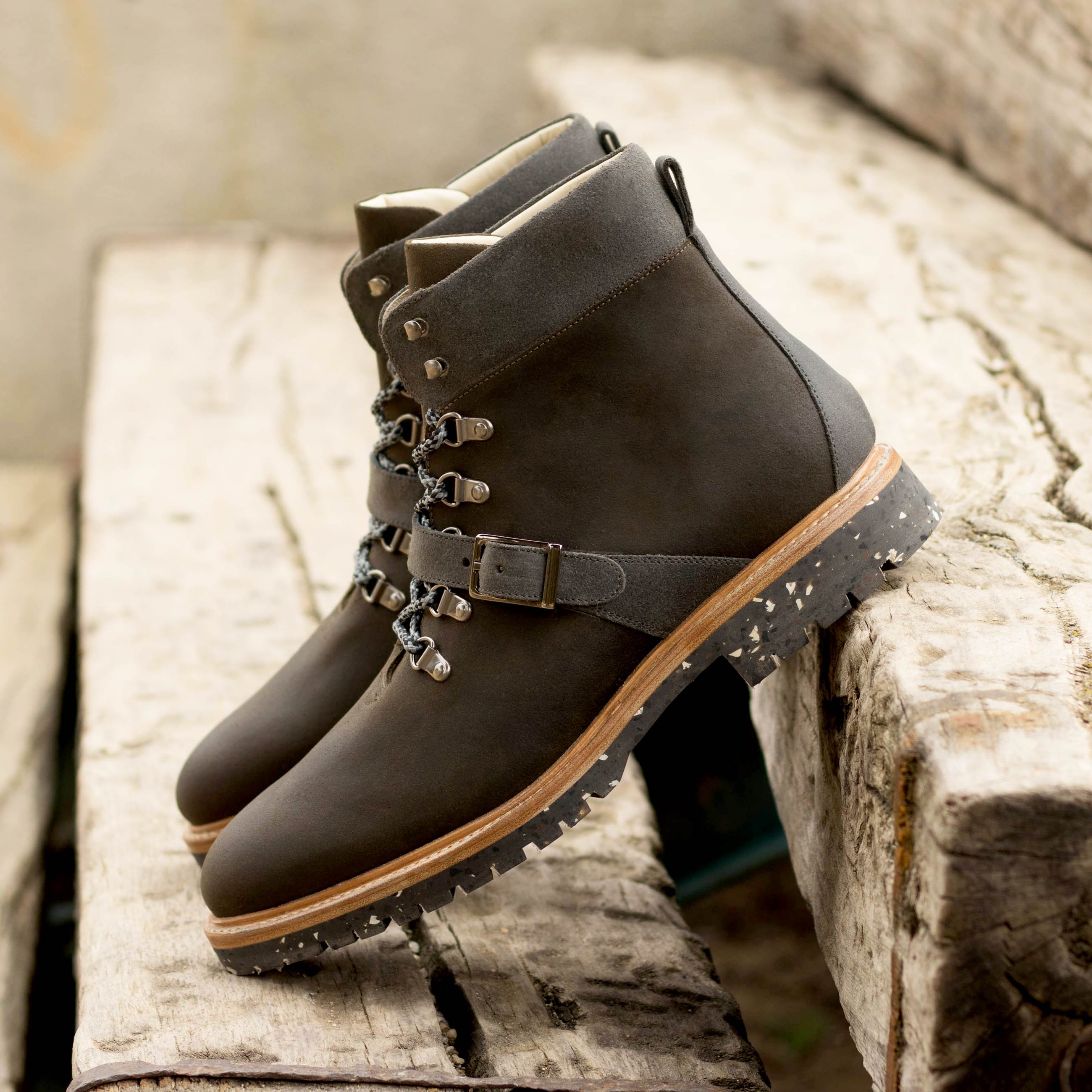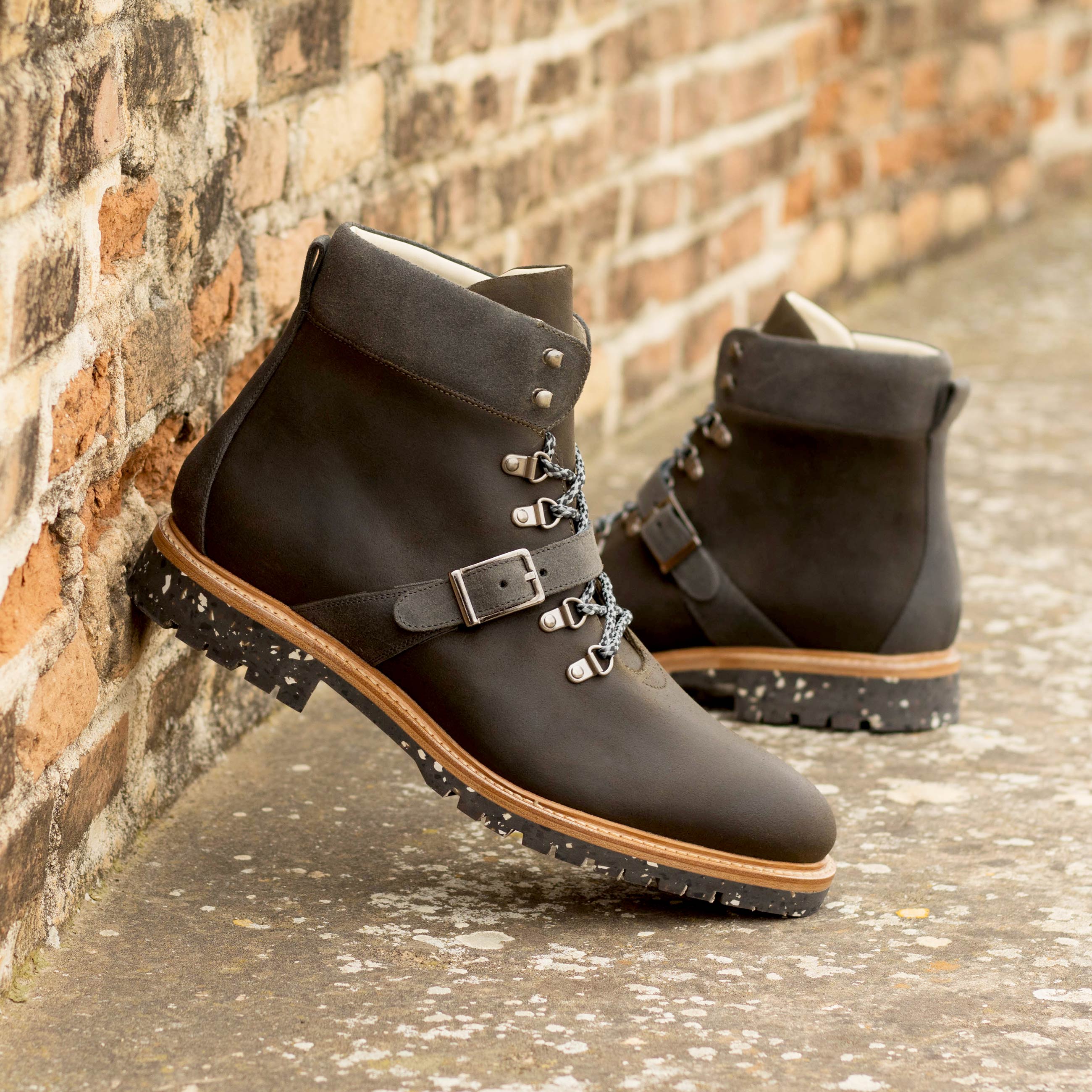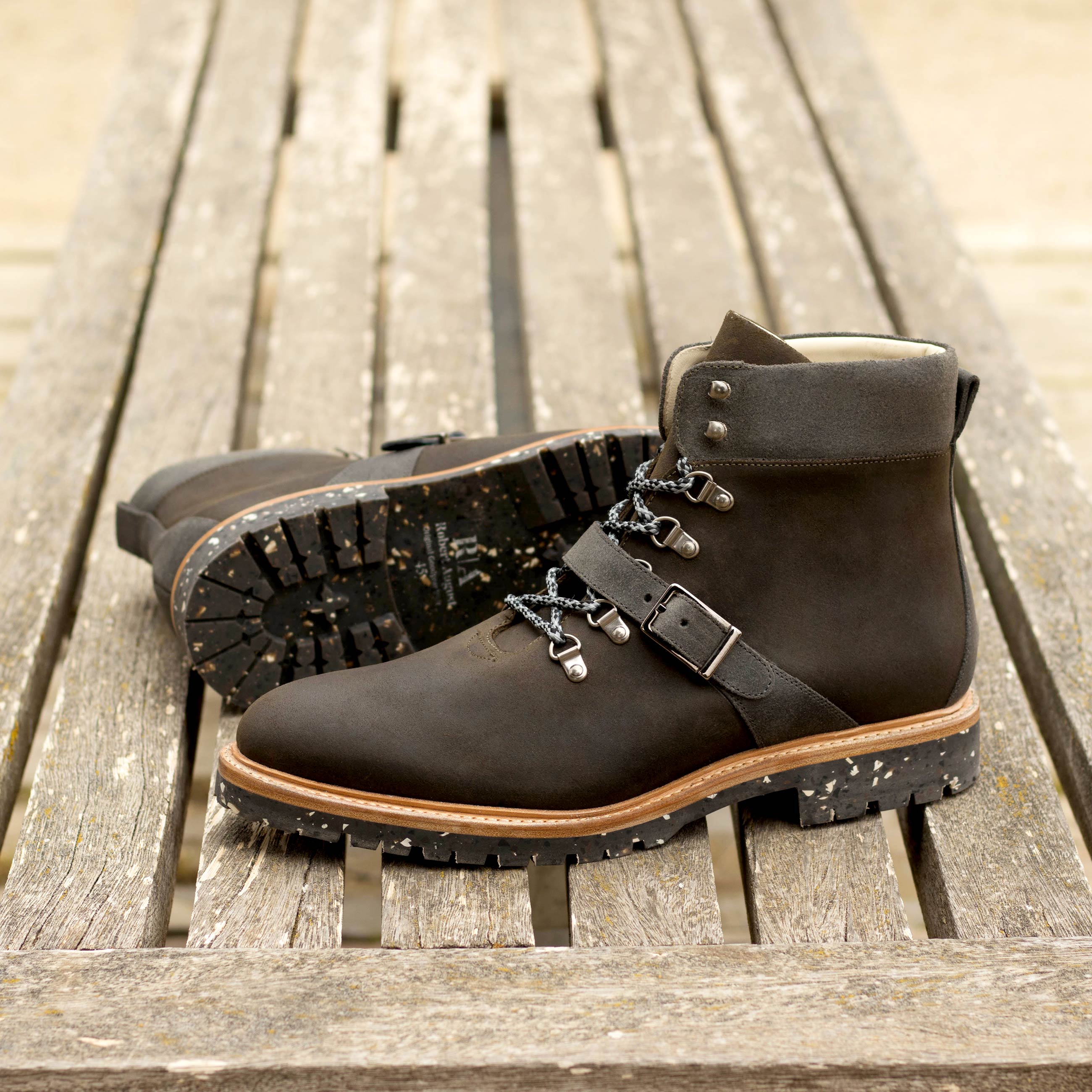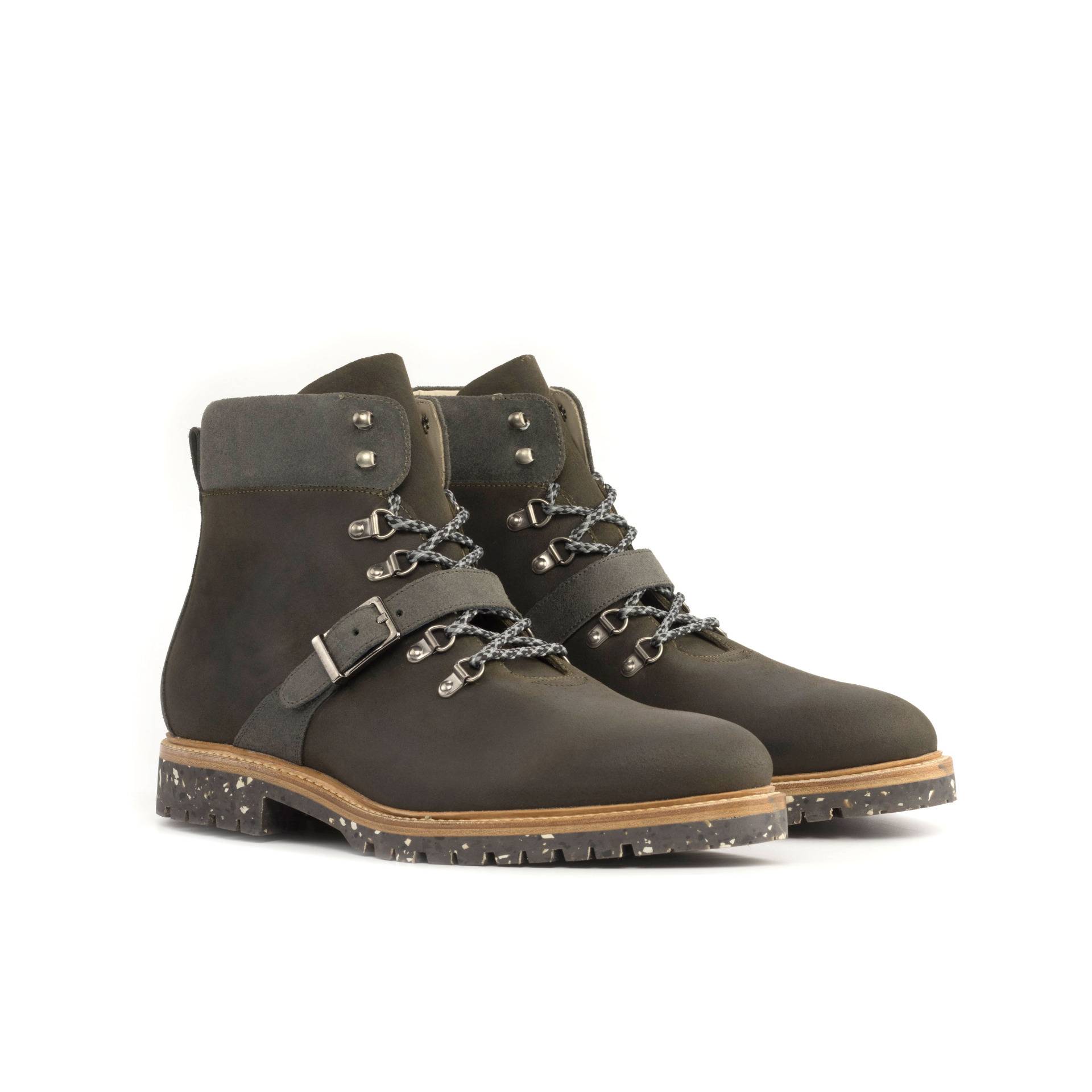 Are you ready to hit the trails in maximum comfort and style? Look no further than the Walton St. Hiking Boot No. 8060 from Robert August – a state-of-the-art, sophisticated shoe that offers fashion, function, and unbeatable durability! Dressed in waxed green and grey suede with old silver eyelets and grey laces, these shoes can be easily dressed up or down for whatever life throws your way. And as soon as you slip them on, you’ll immediately notice their breathtakingly soft beige calf leather lining: designed for superior comfort along with a recycled commando ultralight rubber sole which ensures durable cushioning and traction – perfect for tackling the toughest terrain with ease. So don’t wait: the Walton St. Hiking Booths No. 8060 from Robert August will deliver unbeatable fashion AND function – get them today!