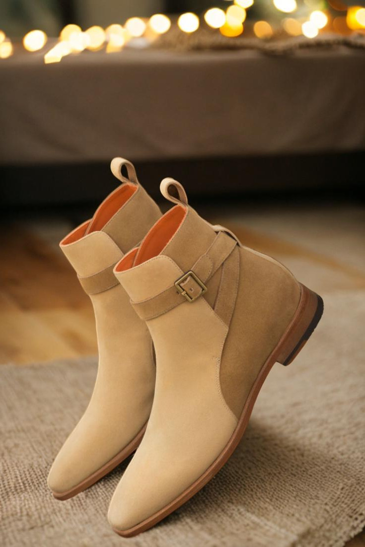 Crafted to perfection, the front of the boot features a stunning Sand Luxe Suede that exudes elegance and sophistication. The sides and stripe boast a captivating Camel Luxe Suede that adds a touch of boldness to its overall aesthetic. Meanwhile, the back strip, cleverly designed in Sand Luxe Suede, creates a striking contrast that guarantees all eyes on you.