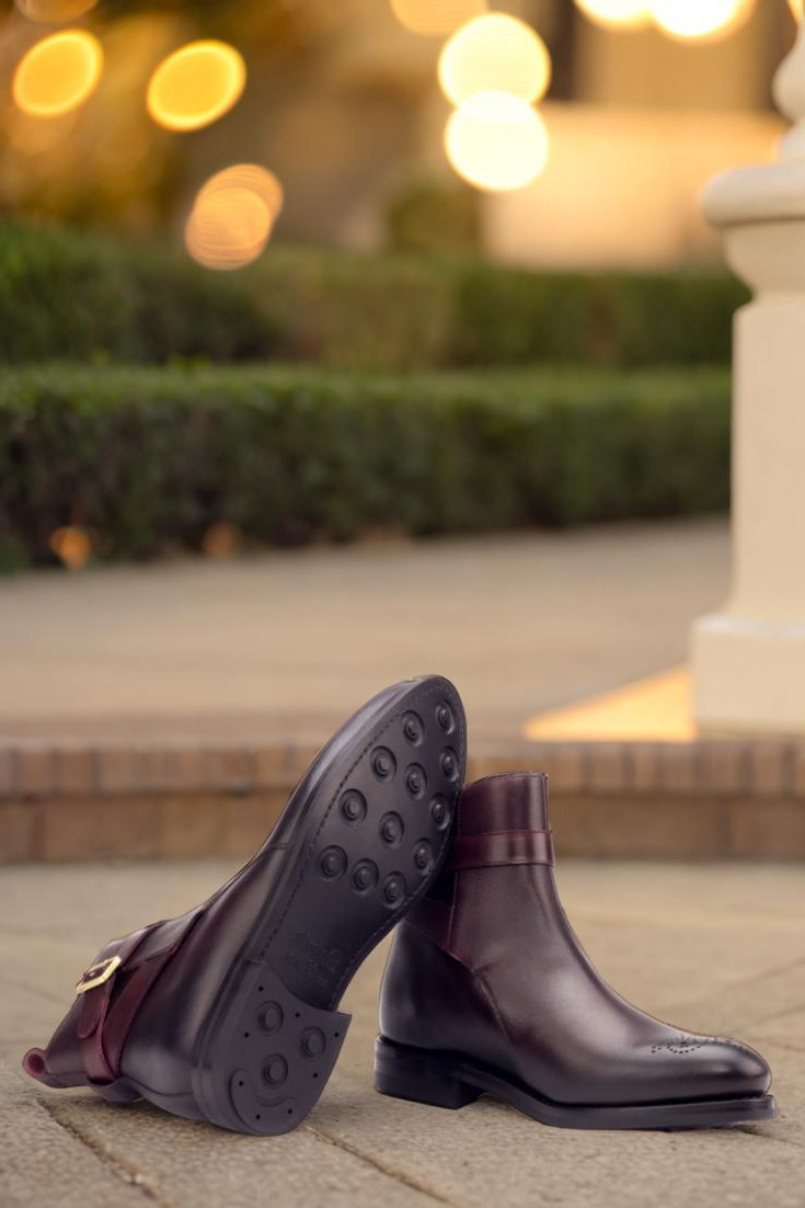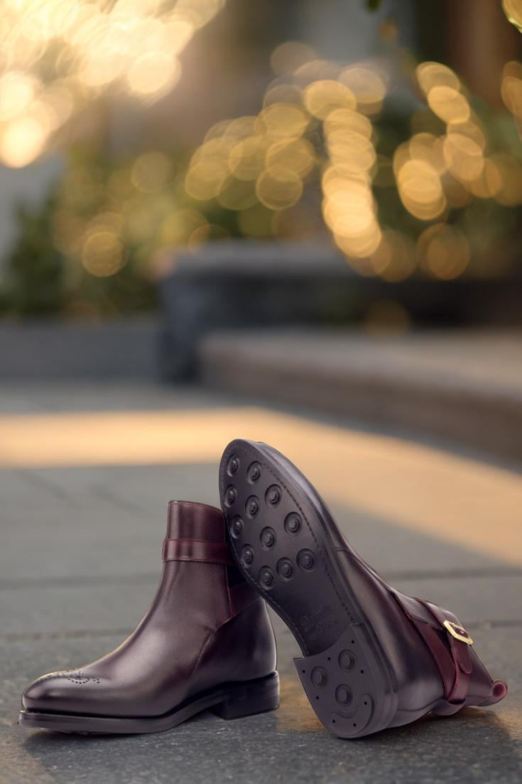 The Rush St. Jodhpur Boot No. 3250 is a flawless combination of timeless sophistication and modern craftsmanship, designed to impress from every angle. Crafted from premium burgundy painted calf leather, carefully treated with rich, dark burnishing, this boot exudes confidence and elegance with its bold, polished finish. The refined straps, paired with a striking old gold buckle, add a level of detail that sets it apart, embodying both luxury and practicality. Inside, the vibrant orange calf leather lining not only delivers a pop of color but ensures unparalleled comfort for all-day wear, making this boot as practical as it is stylish.