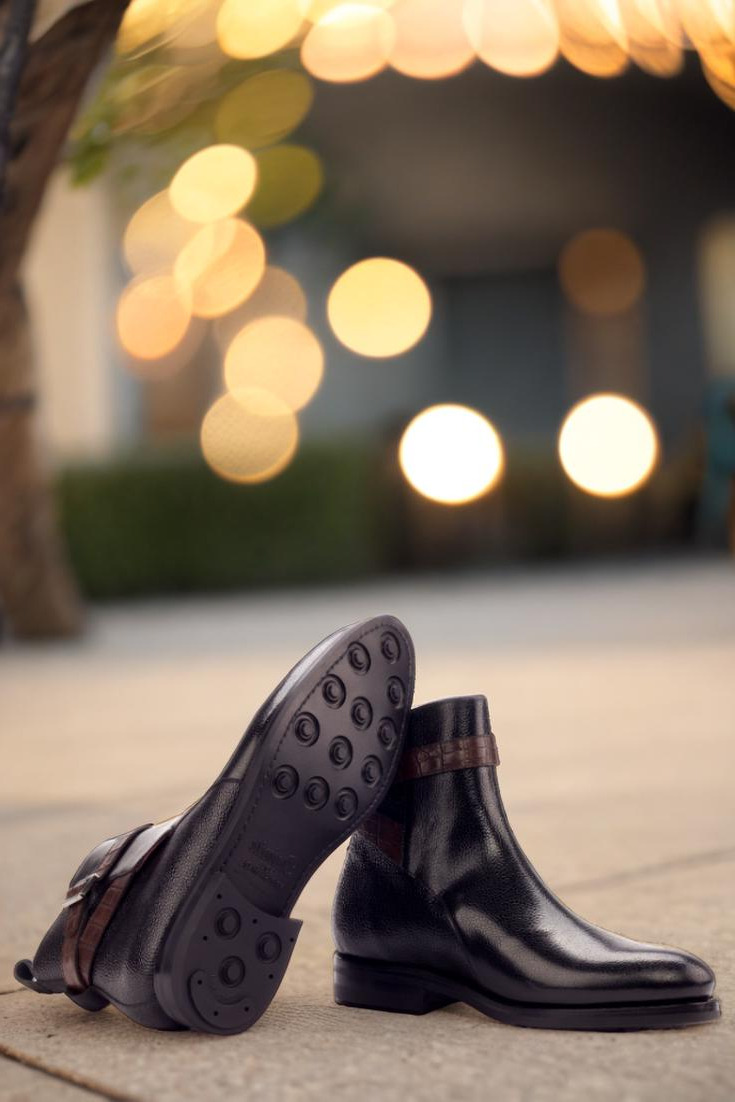 Handcrafted in Spain, The Rush St. Jodhpur Boot No. 3277 embodies quality and excellence. Every stitch and detail is meticulously crafted, creating a one-of-a-kind piece that you can call your own. And if black pebble grain leather and brown croco embossed calf uppers aren’t exactly your style, don’t fret. These boots are fully customizable, ensuring that you can create a pair that truly reflects your unique taste and personality.