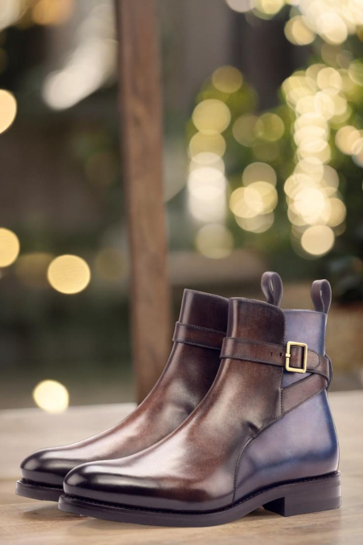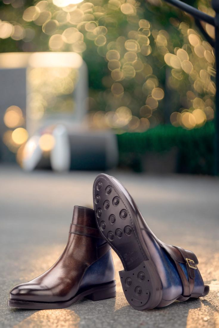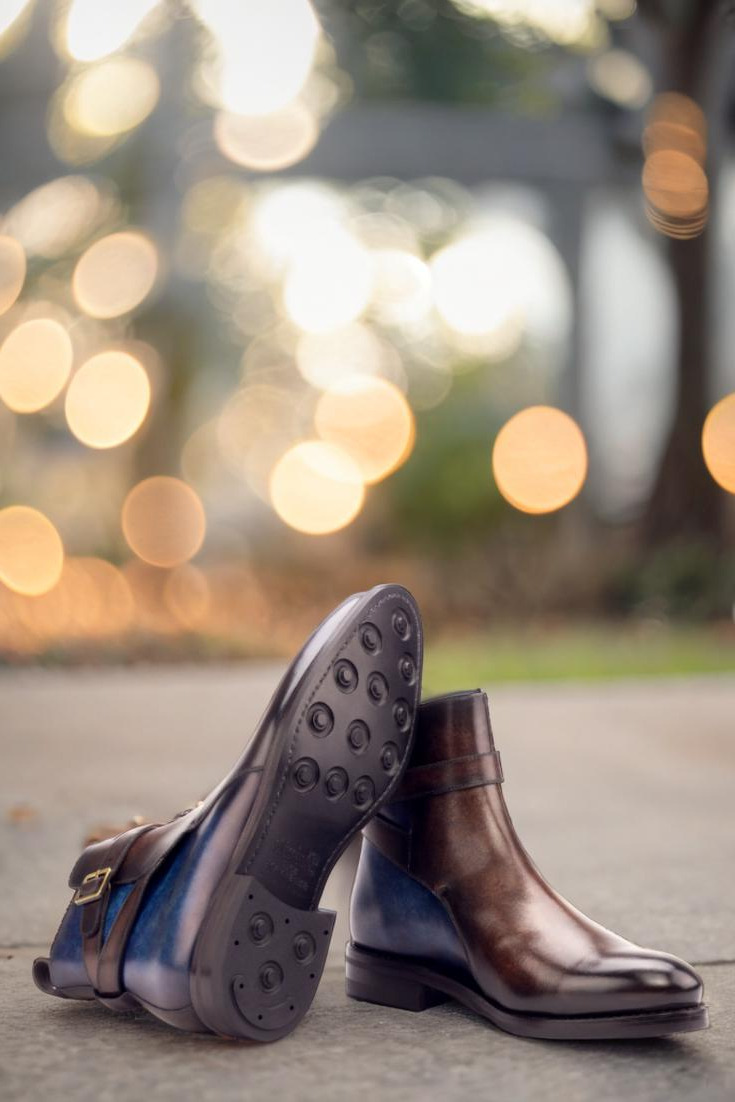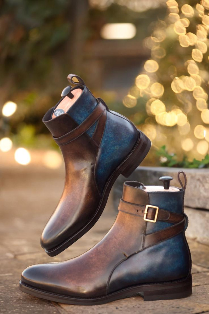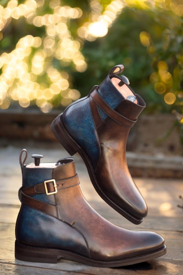 Introducing The Rush St. Jodhpur Boot No. 3338 from Robert August, the ultimate combination of luxury and practicality. With its Italian Raw Crust Leather uppers, expertly crafted with a Denim Blue and Brown Hand Patina finish, this boot is a true work of art. The patina style used is Marble, adding a unique and eye-catching element to the design.