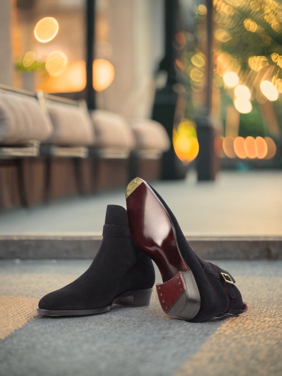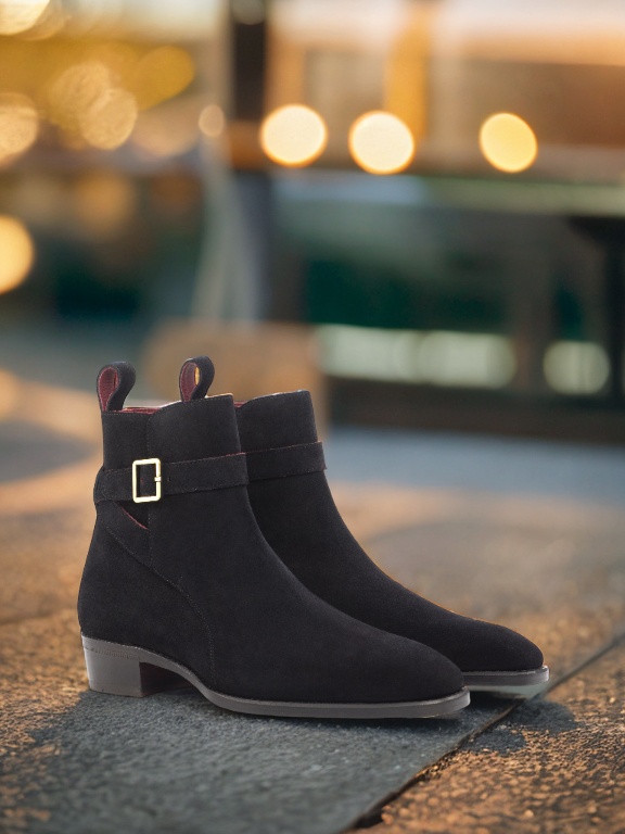 The upper is made of luxurious black suede, soft to the touch and visually striking. The old gold buckle adds a touch of elegance and sophistication to the overall design, making it a statement piece for any outfit. But these boots aren’t just about looks, they’re built to last with a sturdy Goodyear welt construction.