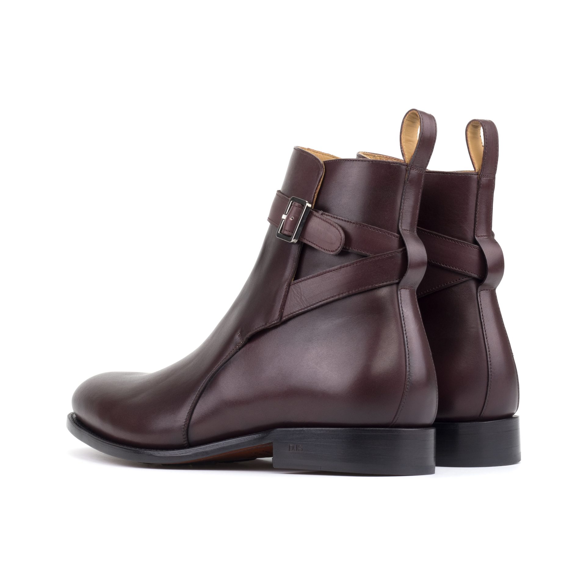 Crafted with attention to detail, the boot features a luxurious burgundy painted calf leather on the front, sides, and straps, creating a seamless and cohesive look. The back strap, also in burgundy painted calf leather, adds a touch of sophistication with its sleek design.