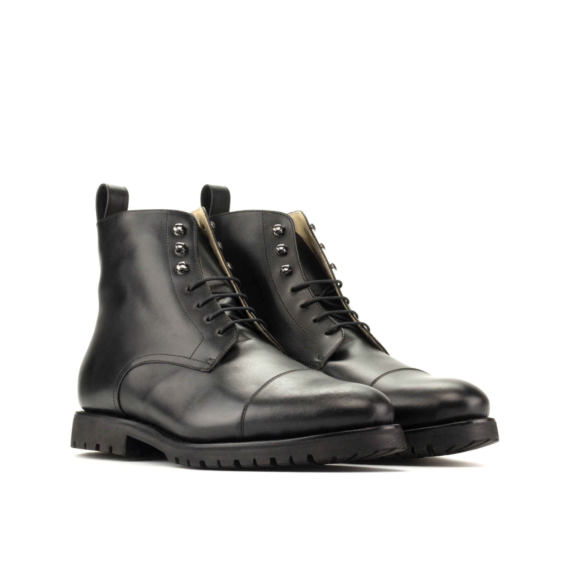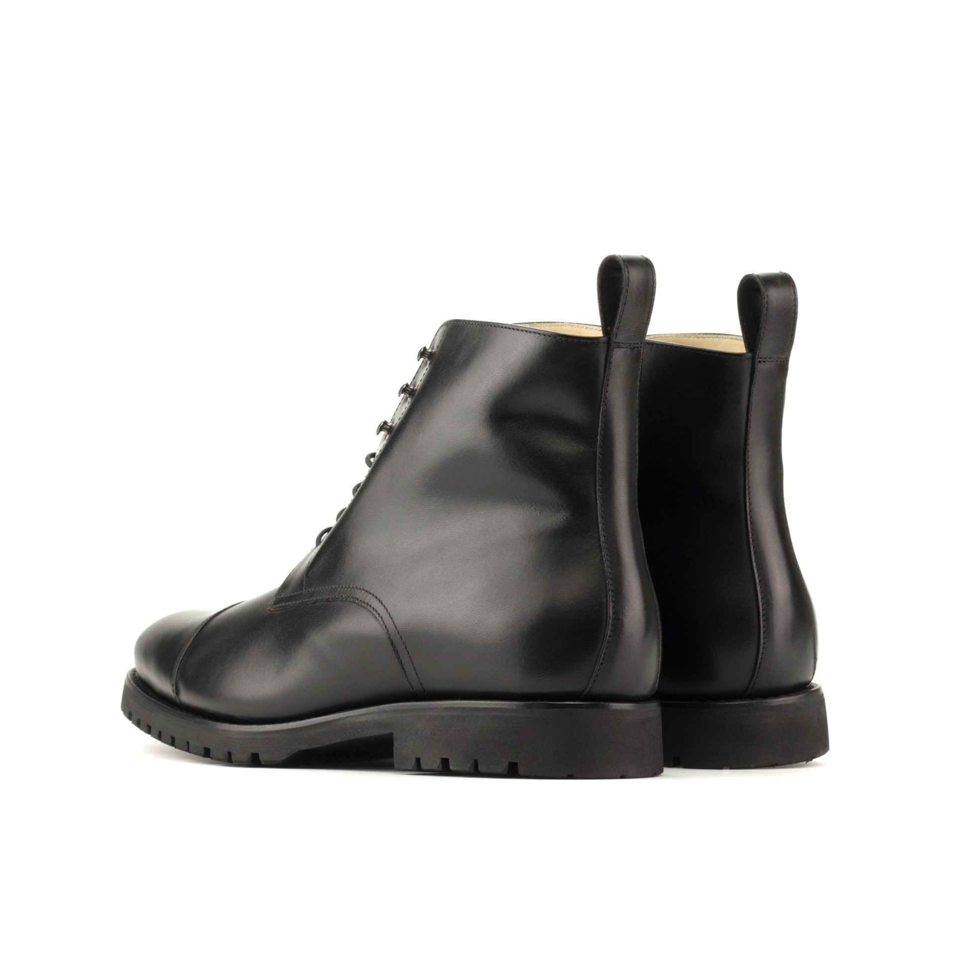 The entire exterior profile—including the vamp, quarter, tongue, toe cap, and back strip—is constructed from premium black box calf leather. Box calf is renowned in the shoemaking industry for its smooth finish, firm structure, and distinct ability to hold its shape over years of consistent wear. This choice of material ensures the boot resists daily abrasions while maintaining a polished, professional appearance. The deep black tone provides maximum versatility for your wardrobe, allowing the footwear to transition effortlessly between demanding outdoor environments and formal urban settings.