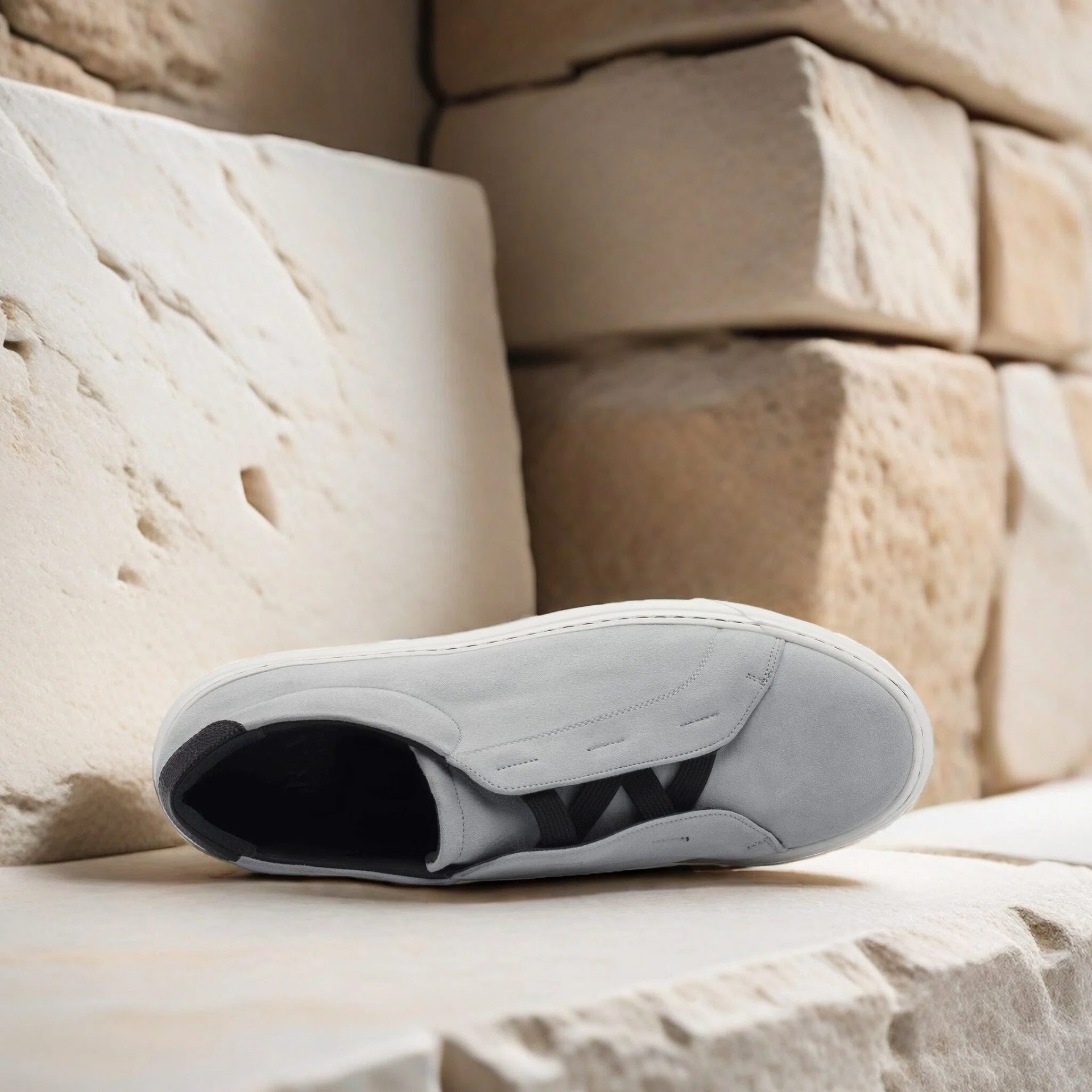 Efficiency meets craftsmanship in The Cambridge Ave. Laceless Sneaker No.8320. This footwear eliminates the friction of daily dressing, offering a slip-on design that maintains the secure fit and structured silhouette of a traditional sneaker. The aesthetic relies on a sophisticated contrast of textures and neutral tones, designed to integrate seamlessly into a modern wardrobe.