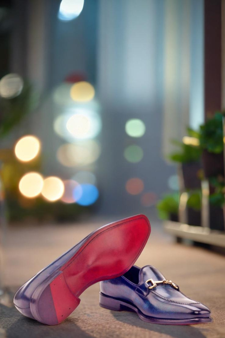 The Black Calf Leather lining provides comfort and durability, making these loafers not only fashionable but also practical for everyday wear. The Dark Red Hand Painted Leather sole offers a pop of color and adds a luxurious touch to the overall design.
