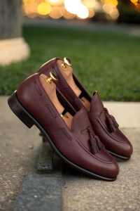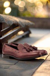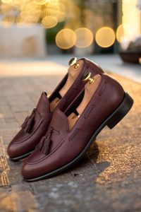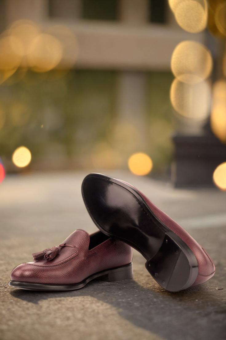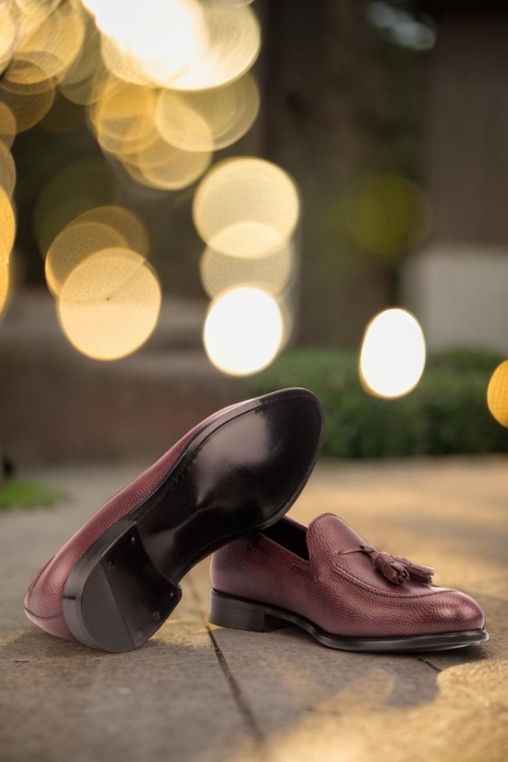 But what truly sets this loafer apart is the subtle yet striking burgundy painted calf piping and tassels. These accents add a touch of refined luxury, making a statement without being overbearing. And with a black calf leather lining, these loafers are not only stylish but also comfortable to wear.