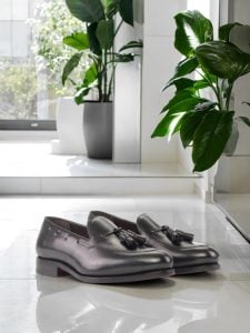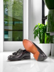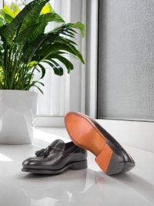 The uppers are crafted from the finest black luxe calf leather, giving the shoe a sleek and sophisticated look. As you slip your feet into the shoe, you’ll feel the soft and supple brown calf leather lining that will keep your feet comfortable and protected.
