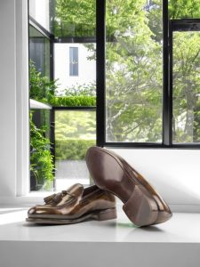 The uppers are made from luxurious Tobacco – Museum Hand Patina Leather, giving the shoe a rich and timeless look. The lining is made from soft and supple Brown Calf Leather, providing all-day comfort for your feet. The sole is hand-painted in a rich Brown color, lending a sophisticated touch to the overall design. And for added durability, the outsole is finished in classic Black.