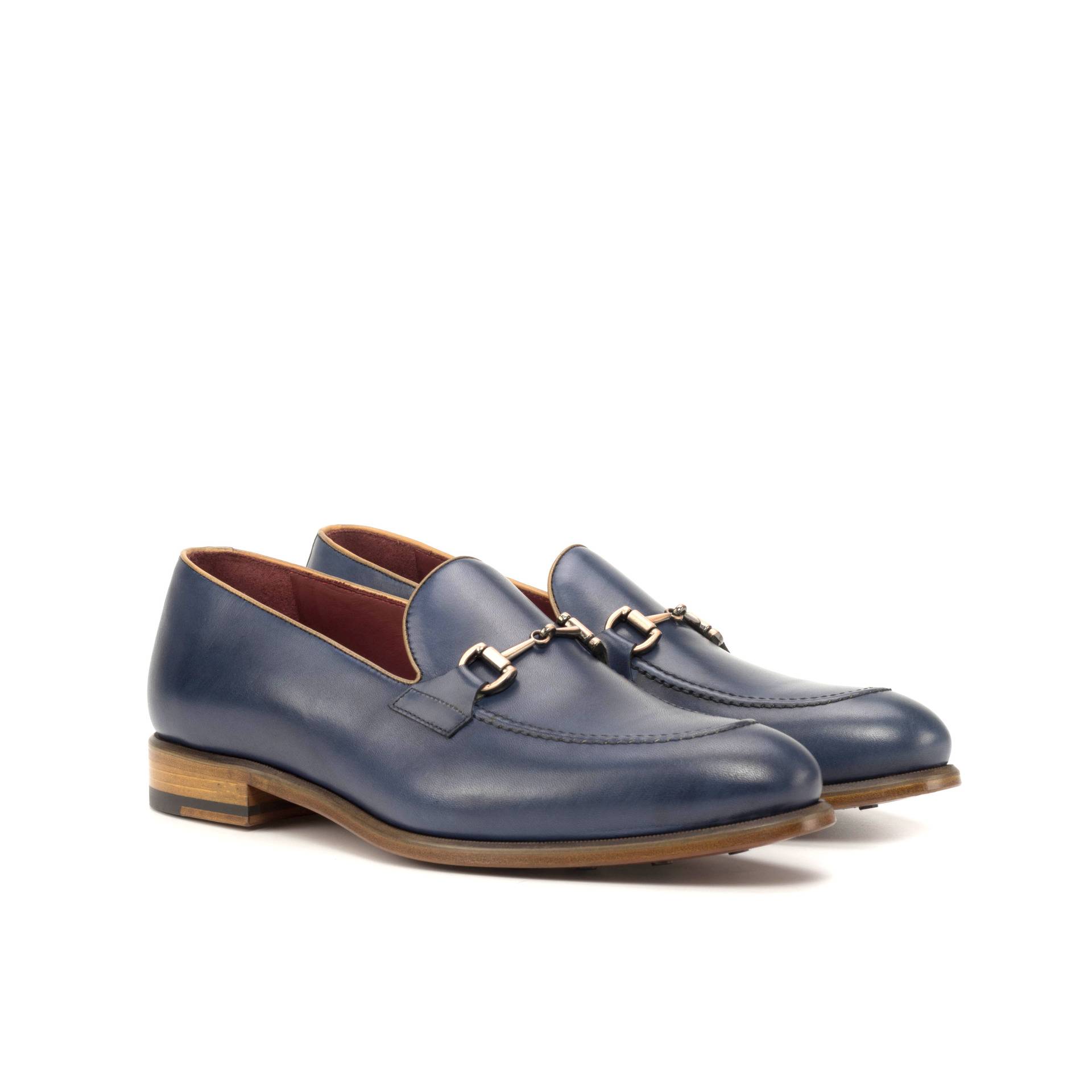 Step out in confidence and style with The Grand Ave. Loafer No. 8020 from Robert August. This timeless piece is carefully crafted and designed with you in mind, combining elements of traditional style and modern luxury. Made with navy blue painted calf for the base and back, Cognac painted calf for piping, navy blue painted calf for the accent grips, a copper bit and a red calf leather lining, this shoe is built on the 312 last and features a rounded toe making it perfect for achieving the traditional English look. Furthermore, it features a Goodyear welt construction and is finished with a natural outsole, creating a sophisticated and elegant look that lasts. Whether you keep it as is, or customize the shoe to make it your own, the Grand Ave. Loafer No. 8020 from Robert August gives you the ultimate flexibility to express your style.