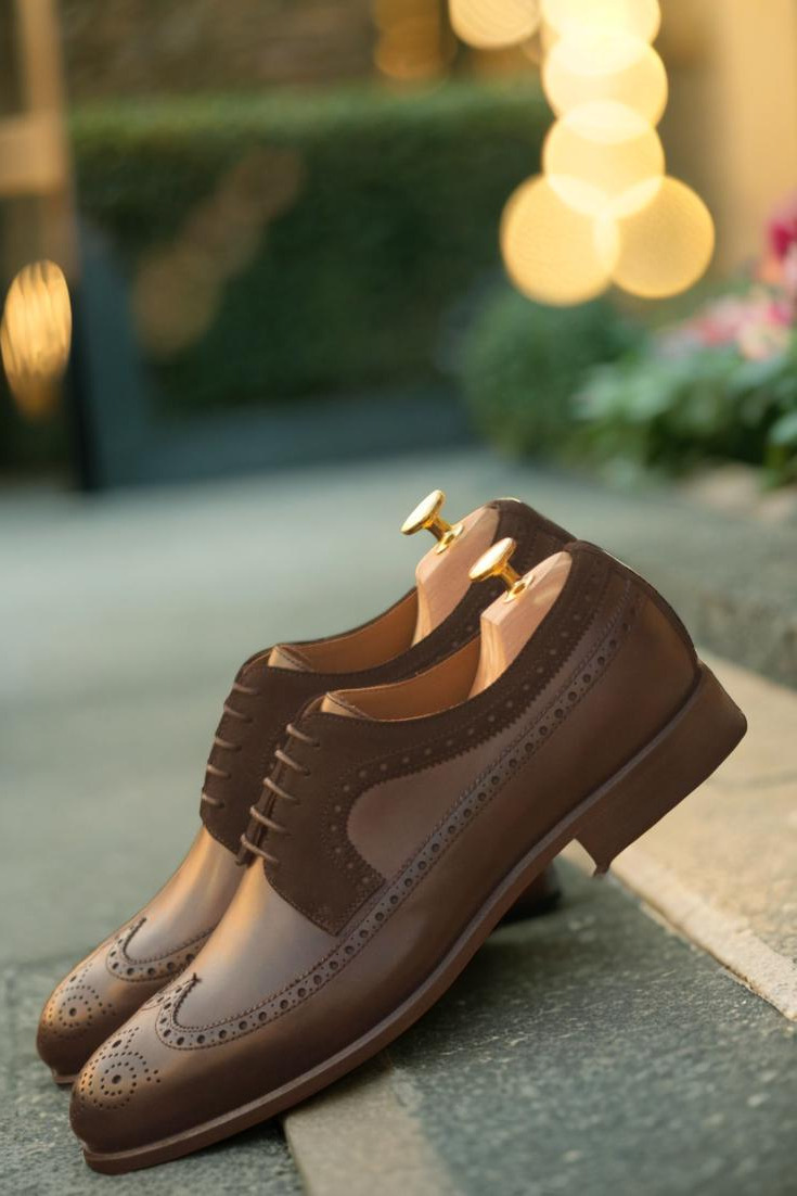 But it doesn’t stop there – the Back of the shoe is crafted with luxurious Dark Brown Luxe Suede, giving it a subtle yet striking twist. The combination of suede and leather creates a visually appealing contrast that is sure to turn heads. To complete the look, the shoe is meticulously laced with Round-Brown laces, adding both functionality and style.