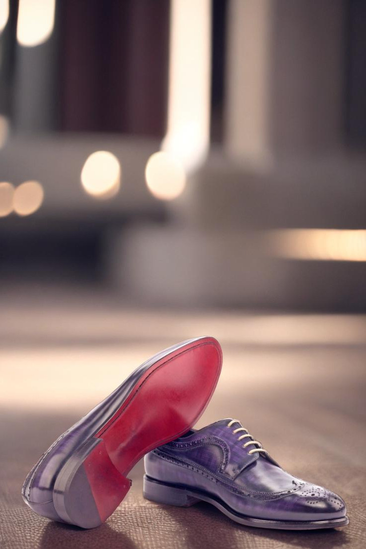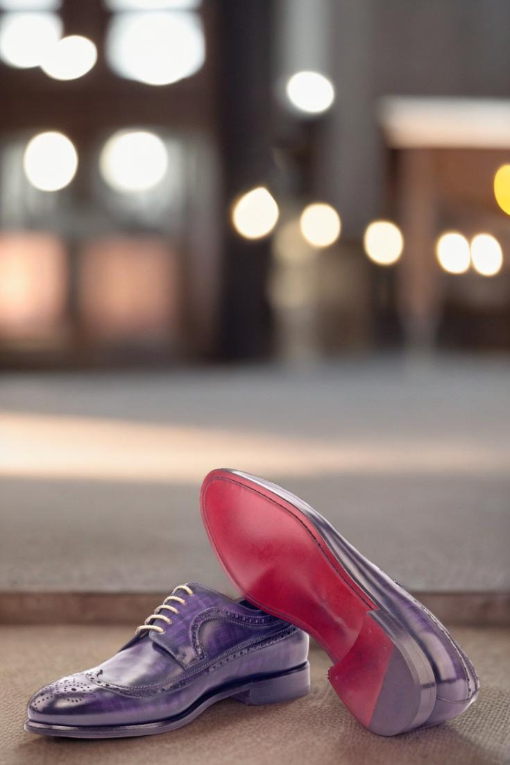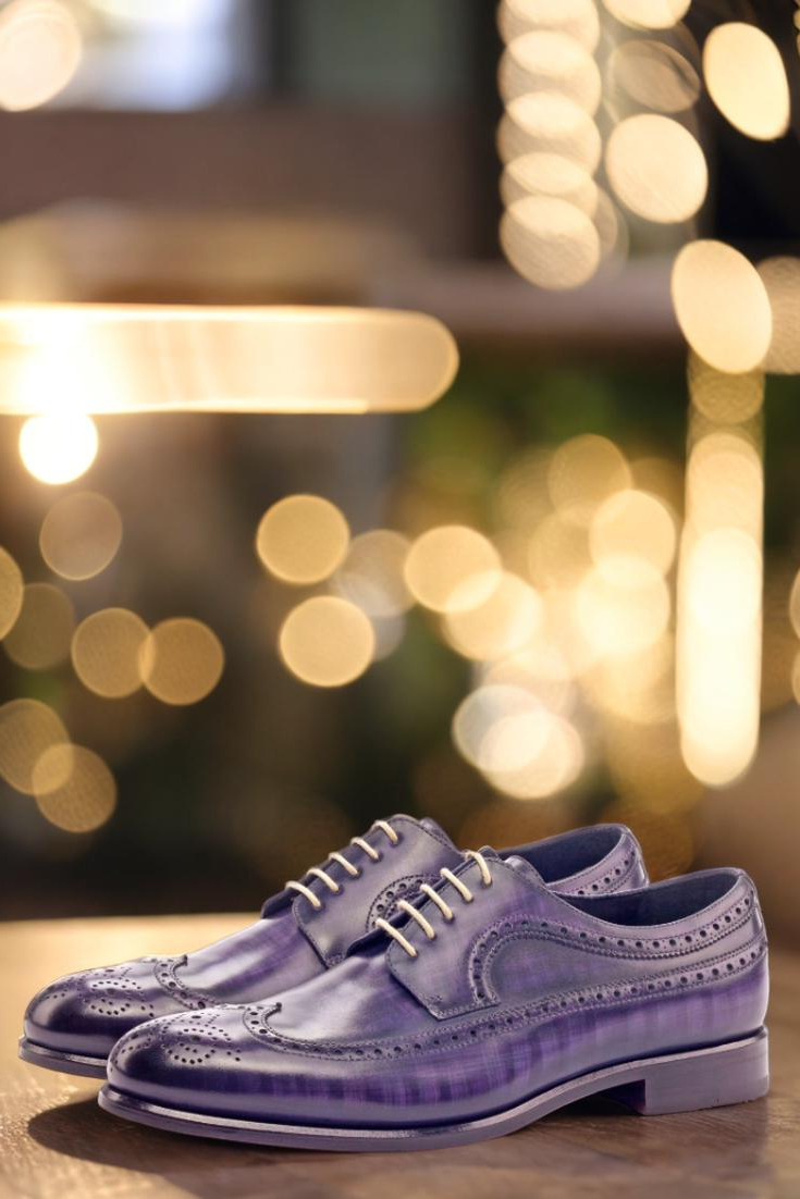 Made with exquisite Italian Calf Leather, the Longwing Tip, Vamp, Quarter, and Back are hand-patinaed in a captivating Purple Papiro shade. The dark patina intensity adds depth and character to the shoe, making it a true statement piece.
