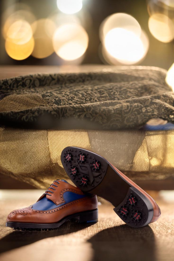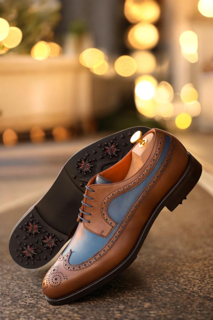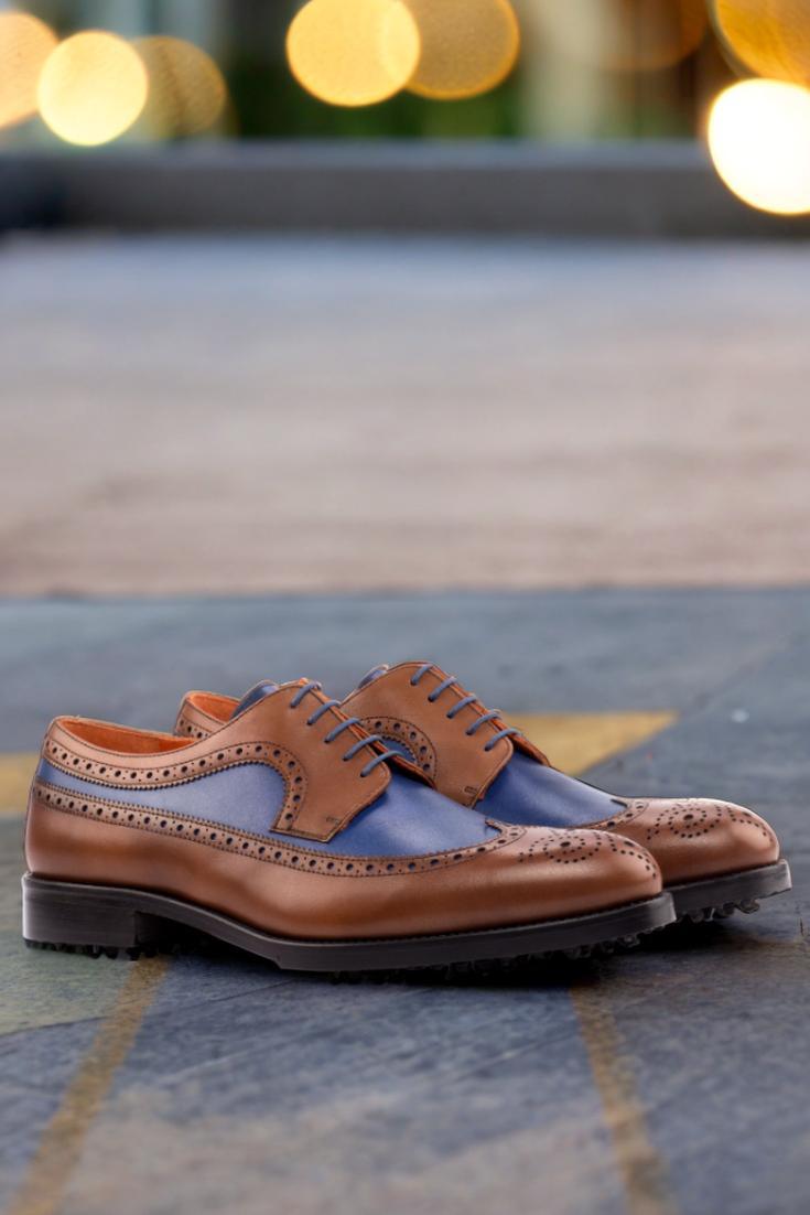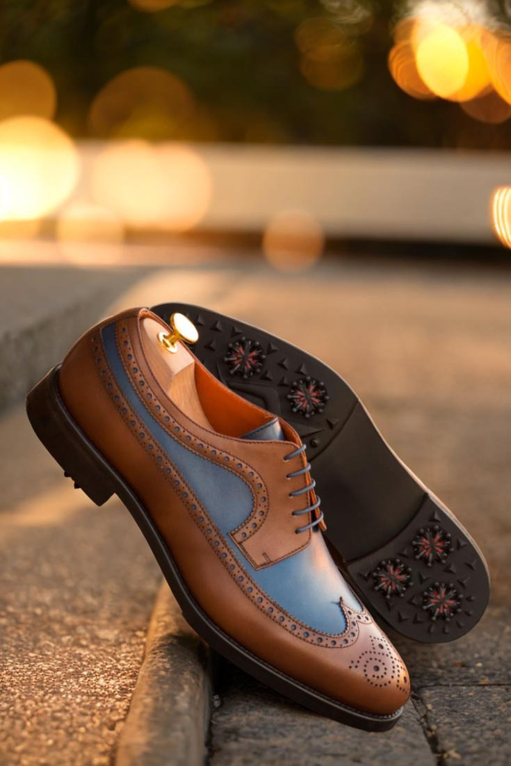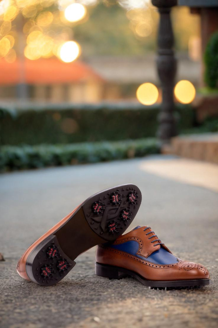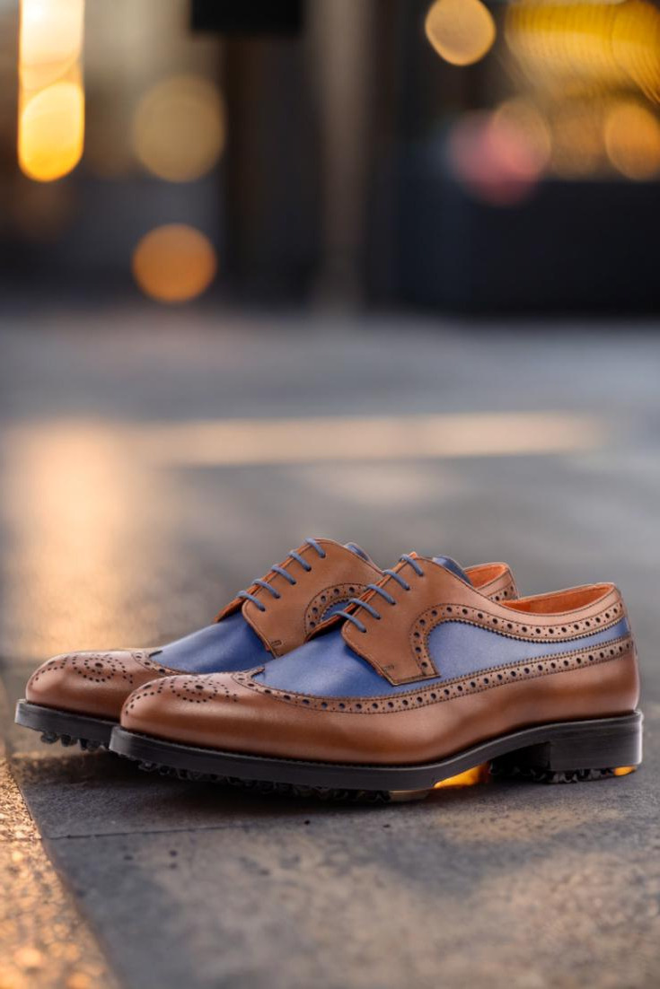 Crafted in Spain by skilled artisans, these shoes feature a classic Longwing tip design, with a twist of modernity. The medium brown painted calf leather on the tip, vamp, quarter, and back of the shoe not only exudes sophistication, but also adds durability to withstand the demands of the golf course.