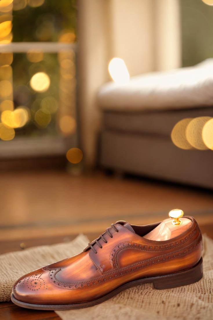 Step into sophistication and style with The Elston Ave. Longwing Blucher No. 2909 from Robert August. Crafted with the finest Italian Calf Leather in a rich Cognac Original Hand Patina finish, these shoes exude luxury from every angle. The Longwing Tip design adds a classic touch, while the meticulous attention to detail in the Vamp, Quarter, and Back showcases the expert craftsmanship that Robert August is renowned for.