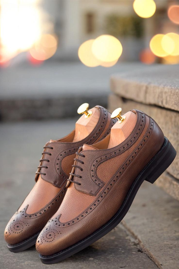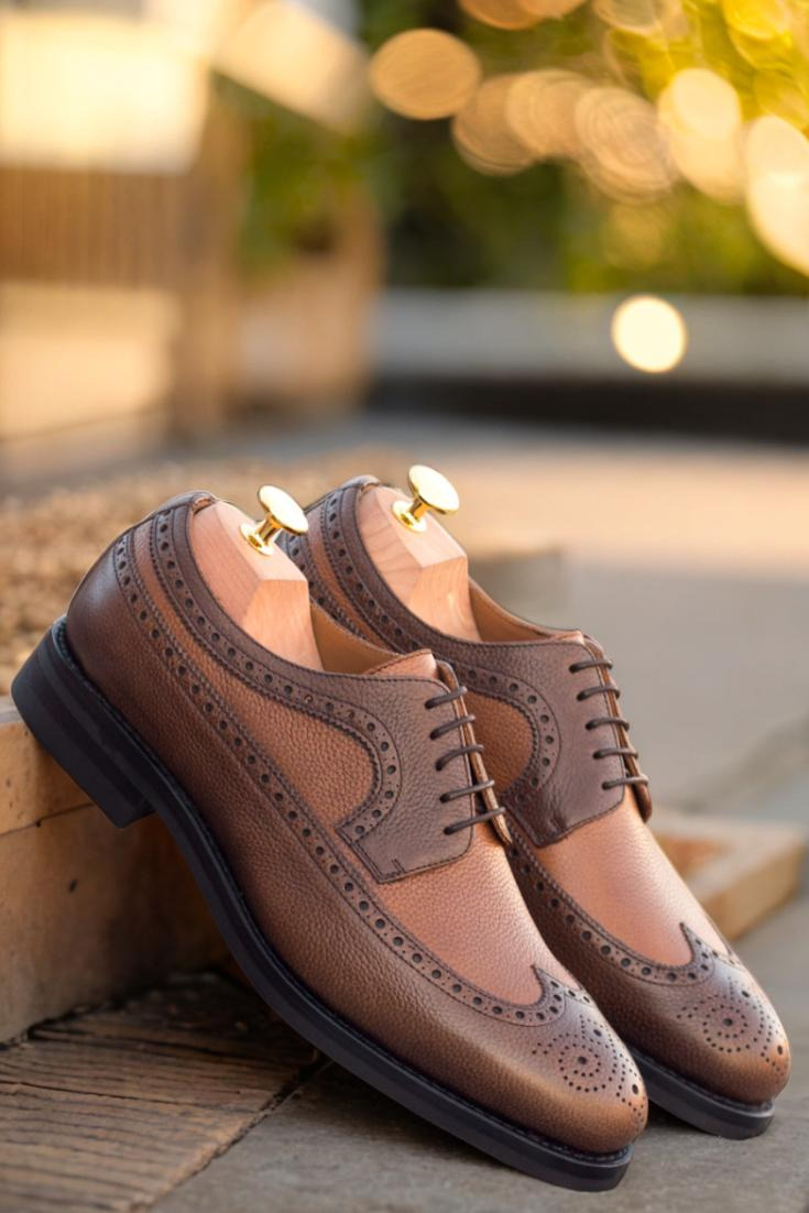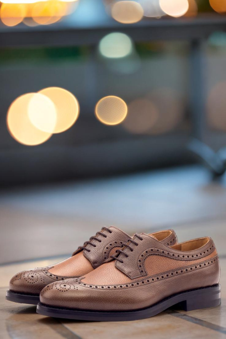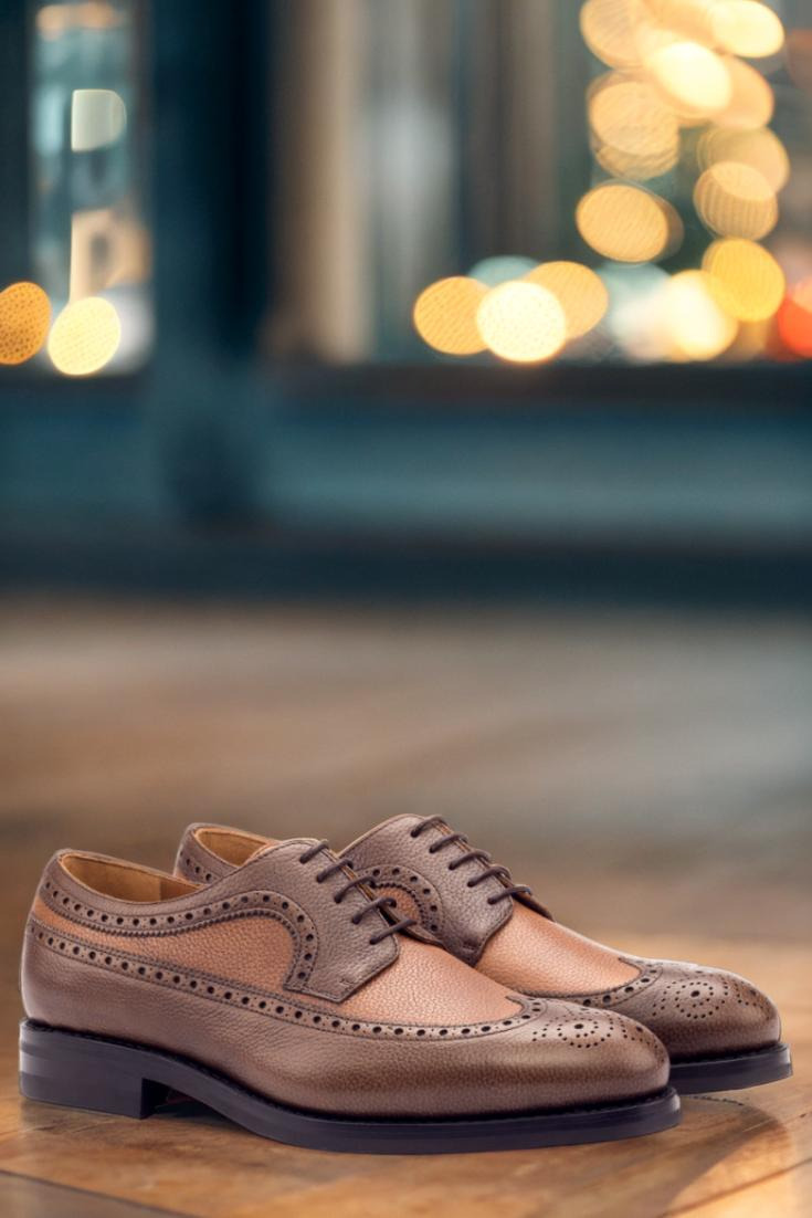 Meet The Elston Ave. Longwing Blucher No. 3230 from Robert August – a shoe that combines style, quality, and versatility in a single pair. Crafted with medium and dark brown painted full grain leather, these shoes exude a sense of sophistication and ruggedness. The brown laces add a touch of elegance, while the tan calf leather lining and sleek black Dainite rubber sole ensure maximum comfort with every step.