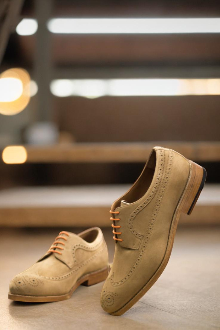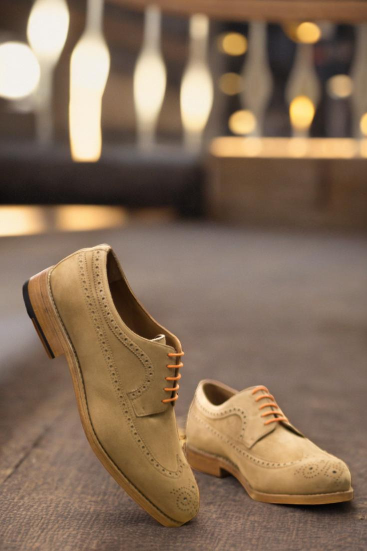 Crafted with rich camel kid suede uppers, these shoes exude luxury and sophistication. The laces in a striking orange hue add a pop of color and personality, setting you apart from the crowd. The lining, made of soft tan calf leather, provides a comfortable and breathable fit, keeping your feet feeling as good as they look.