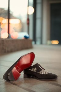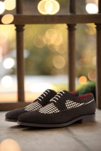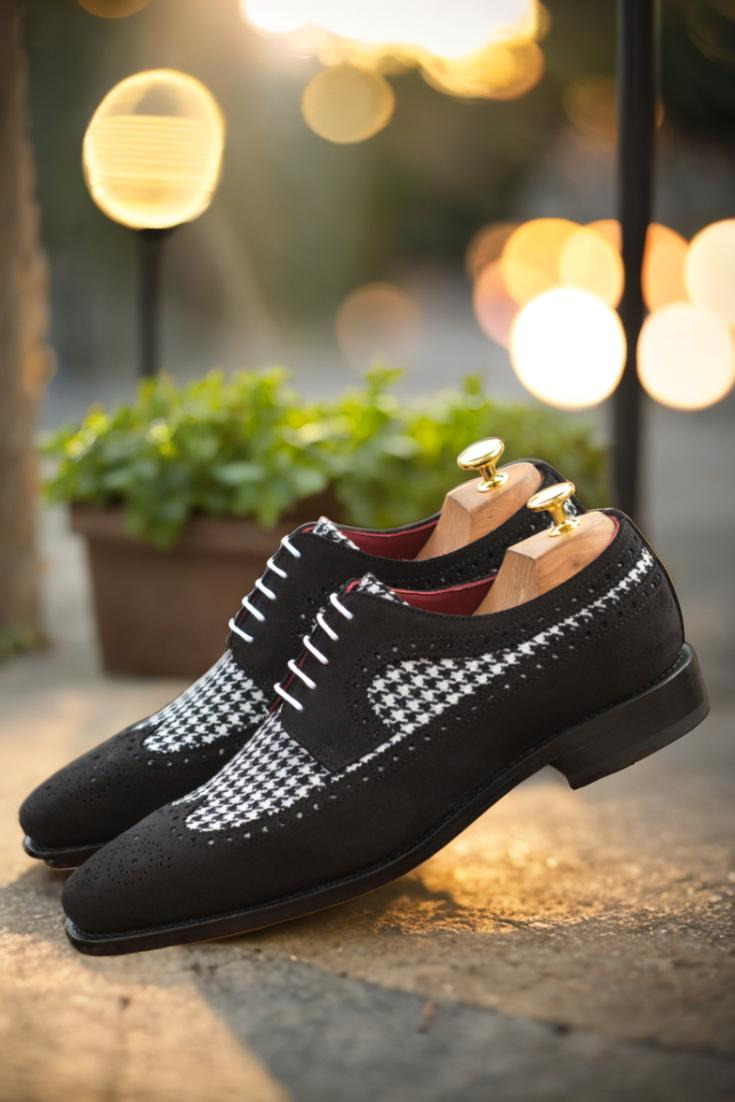 The uppers of this shoe are made from luxurious black luxe suede, adding a touch of sophistication to any outfit. And let’s not forget the eye-catching houndstooth pattern, bringing a timeless and classic element to the design. To complete the look, we’ve added crisp, white laces for a clean and sharp finish.