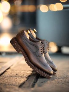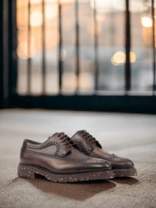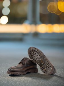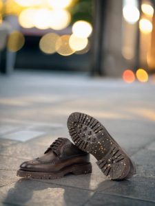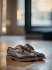 But these shoes are not just about looks. The lining is made of soft brown calf leather for maximum comfort, while the sole is crafted from ultralight recycled rubber commando, providing both durability and a lightweight feel. The storm welt in dark brown offers extra protection against the elements, making these shoes suitable for any weather condition.