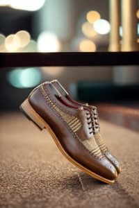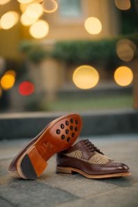But comfort doesn’t end there. The sole, hand-painted with a rich cognac color, not only adds a touch of sophistication but also provides superior traction. The rubber button inserts keep you steady on your feet, even on slippery surfaces. Whether you’re navigating the city streets or attending a formal event, this shoe will effortlessly keep you grounded.
