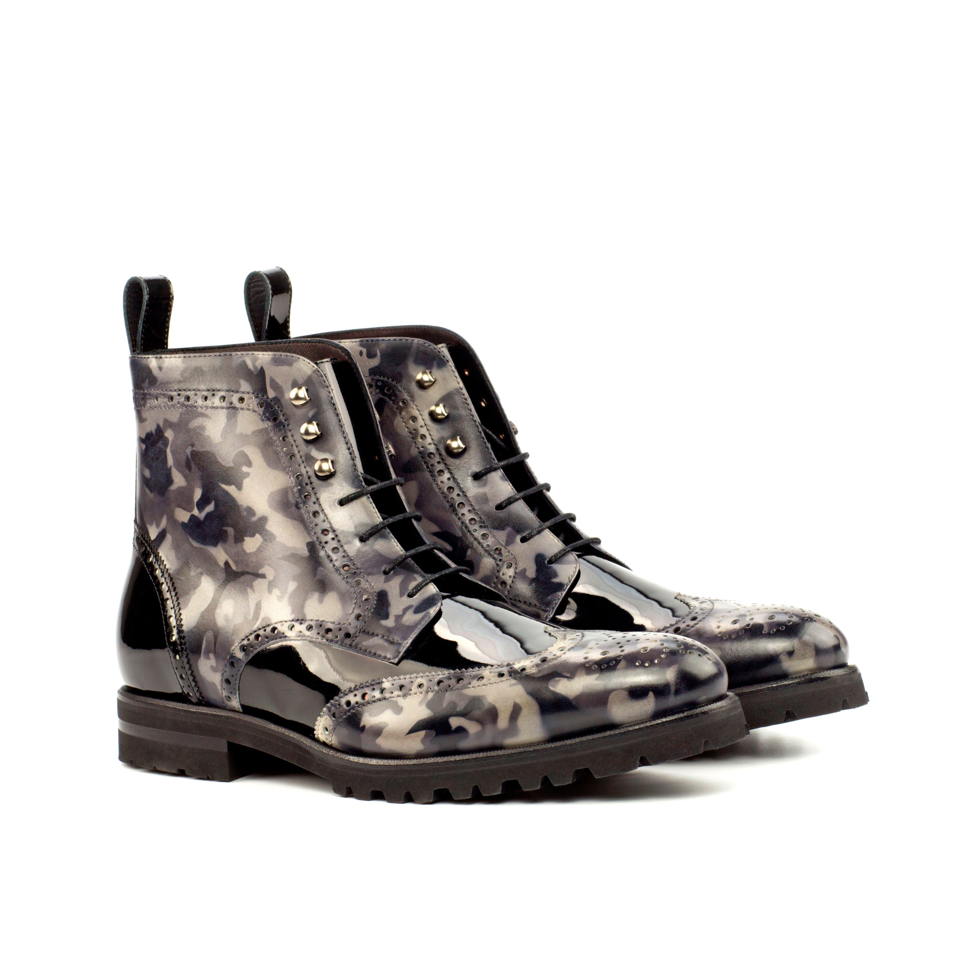 Introducing the ultimate blend of style and functionality – The Dearborn St. Military Brogue Boot No. 4354 from Robert August. This robust and rugged boot is meticulously handcrafted in Spain, ensuring the highest level of quality and attention to detail. Each component is carefully selected, from the luxurious Italian leather toe cap to the striking grey camo hand patina on the vamp and quarter.
