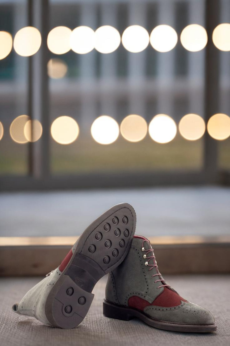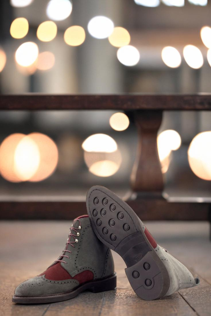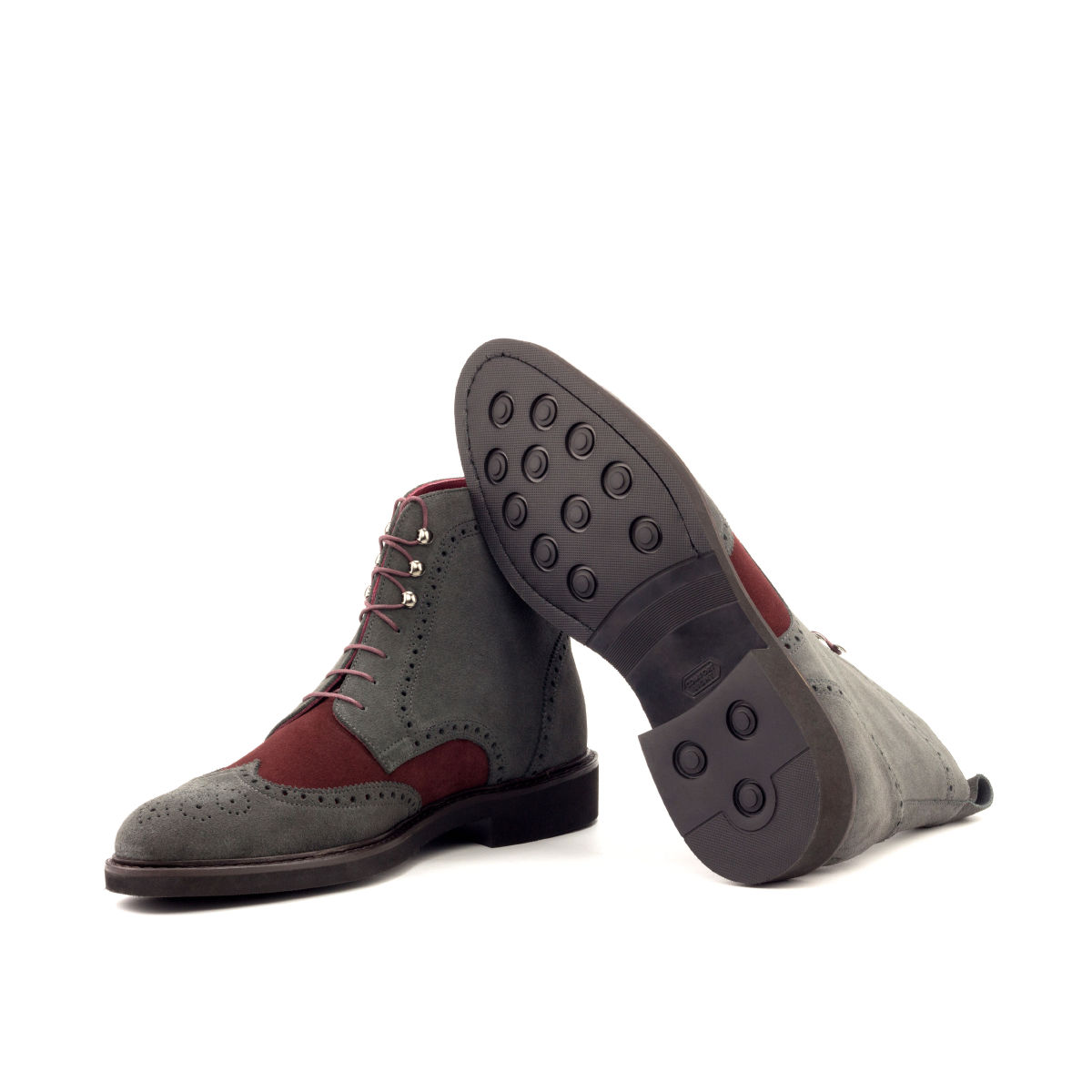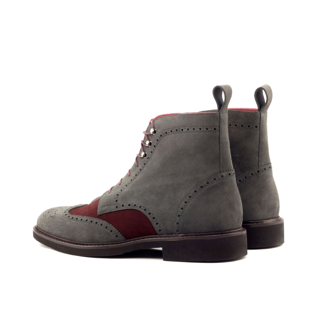 The grey Luxe Suede toe cap and quarter, paired with the rich burgundy Luxe Suede vamp, exude a sense of timeless elegance and high-end luxury. The back strap adds a touch of modern flair, while the graphite eyelets and round-burgundy laces provide a perfect finishing touch.
