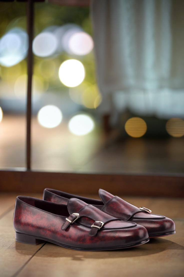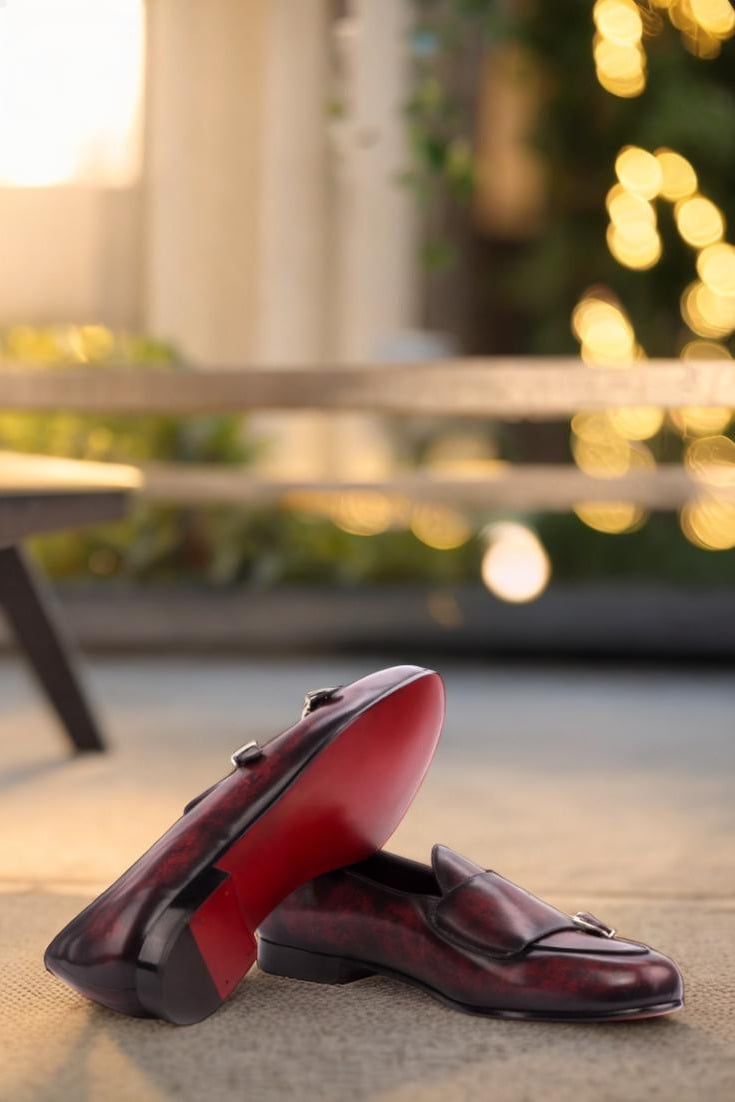 Crafted from the finest Italian calf leather, every step in these shoes is a testament to quality and attention to detail. To add a touch of sophistication, the leather is hand patinated in a striking burgundy hue using the marble technique, giving each pair a unique and distinguished look.