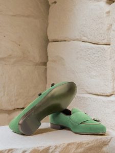 But the true standout feature of this shoe is the forest green leather slipper sole. Not only does it provide ultimate comfort and support, but it also adds a pop of unique color, making it a statement piece to elevate any outfit.