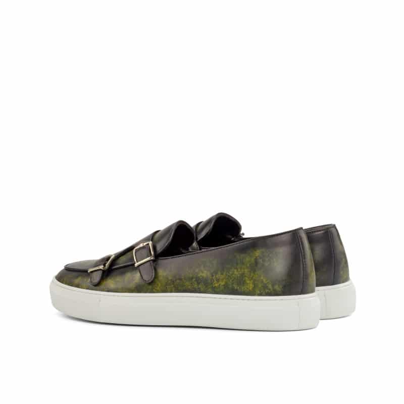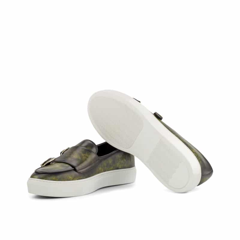 Starting from the base, we have used a gorgeous Khaki – Marbled Hand Patina Leather, giving the sneaker a unique and luxurious look. The buckles are made with nickel, adding a touch of sophistication to the overall design.