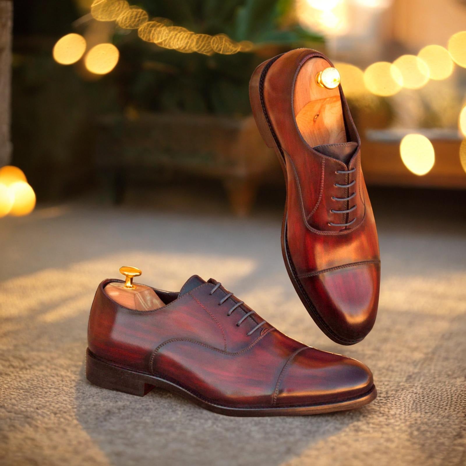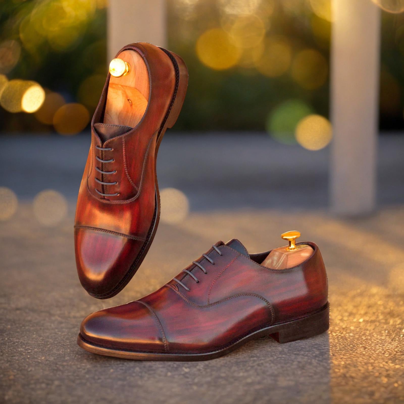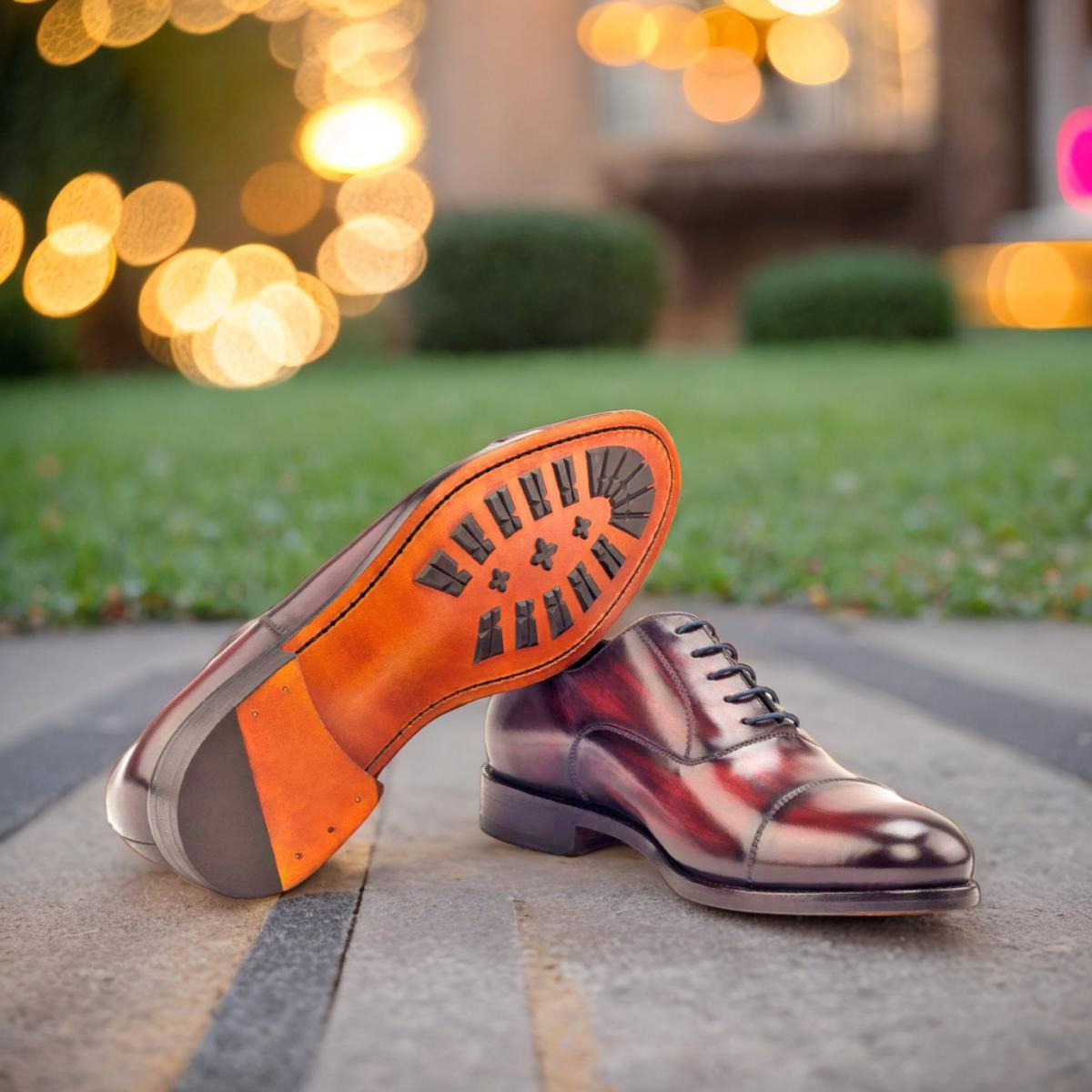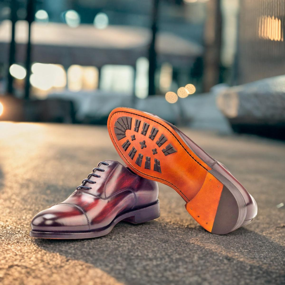 Let’s start with the toe cap, made from Italian Calf Leather with a stunning Burgundy Original Hand Patina. This exquisite detail adds depth and richness to the overall design, ensuring that every step you take is a true statement of refined taste.