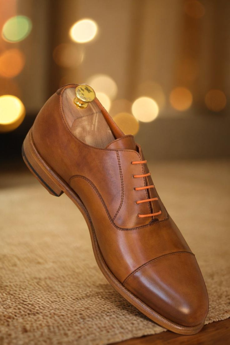 The Cognac Painted Calf toe cap, vamp, vamp tab, base, and tongue come together to create a sleek and polished look that exudes luxury. The round orange laces add a pop of color and flair, setting you apart from the crowd.