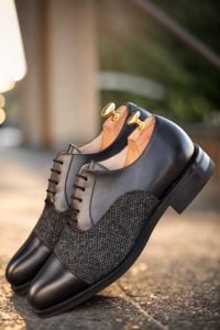 The uppers of this shoe are made with the finest quality Black Box Calf and Nailhead Wool, combining durability with a sleek, polished appearance. The Laces in a matching Black shade add a touch of understated luxury to the overall design.