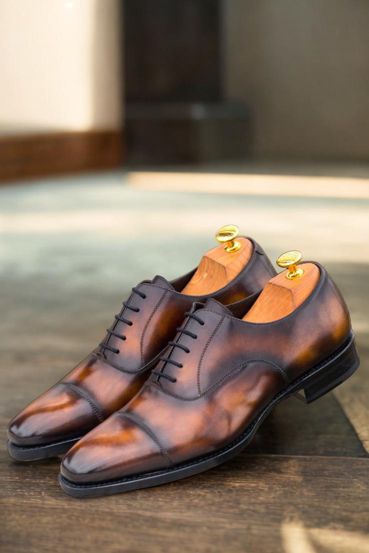The uppers of this shoe are handcrafted from Italian calf leather with a luxurious tobacco hand patina, giving it a rich and distinctive look. The patina style chosen for this shoe is the coveted Museum finish, achieved through a meticulous process of layering and polishing, resulting in a depth and complexity of color that is unparalleled.