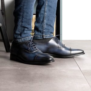 Searching for the perfect office look? Need a fresh pair of good-looking shoes to take you from eight to late night? Then you need the Belmont Ave. Oxford No. 5700EX! This sleek, navy blue painted calf leather shoe is guaranteed to give any ensemble an instant upgrade in style and sophistication. The dark burnishing gives it a subtle elegance that’s perfect for all kinds of occasions, while the Goodyear Welt Construction means that not only do you get tons of style—you also get unparalleled sturdiness and durability. Plus, with our Express Lane service, you can order now and have your shoes in as little as two to three weeks. So don’t settle for subpar—get the Belmont Ave. Oxford No. 5700EX today and experience true fashion!