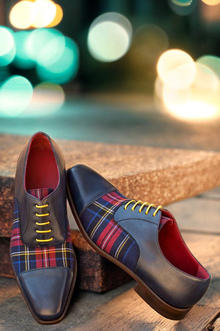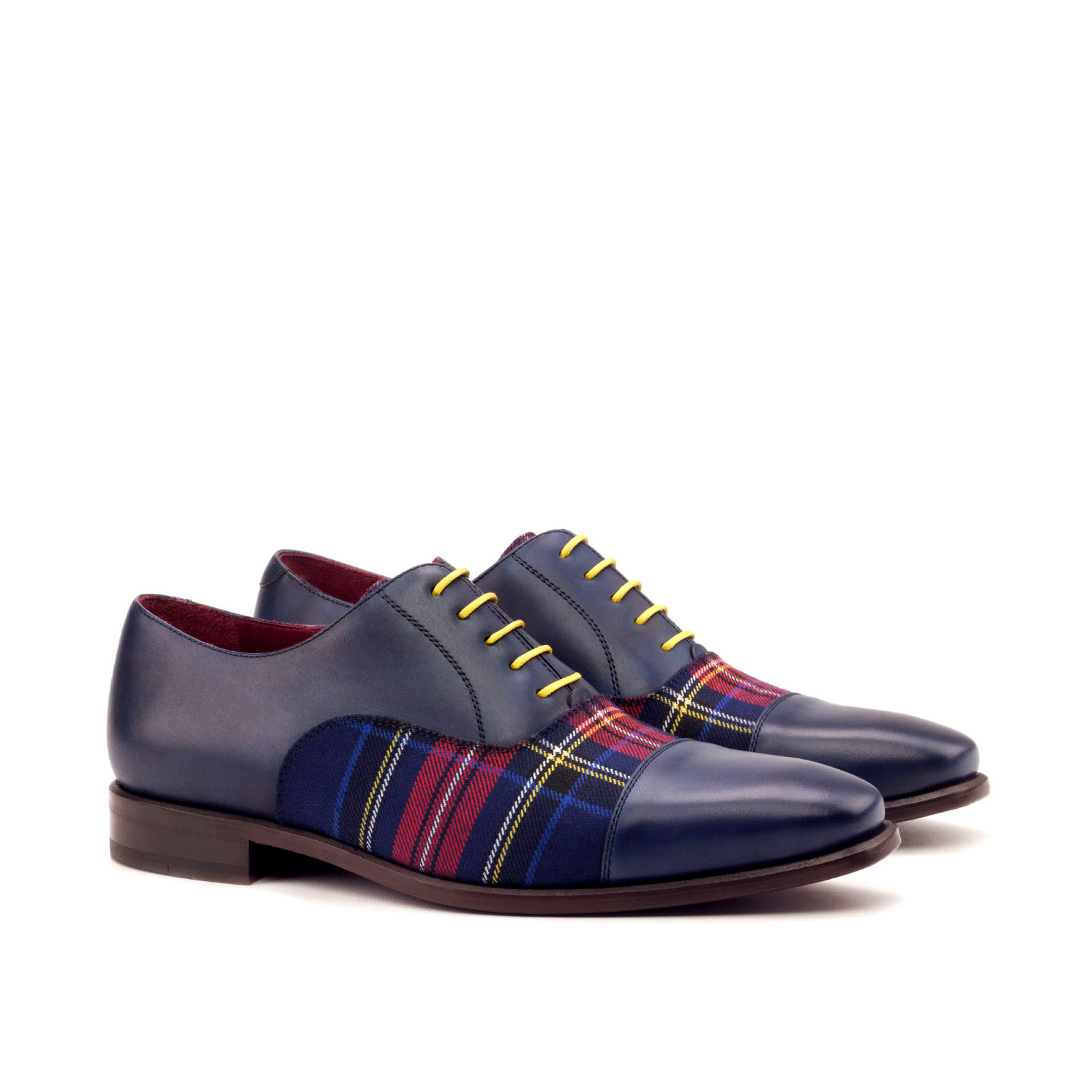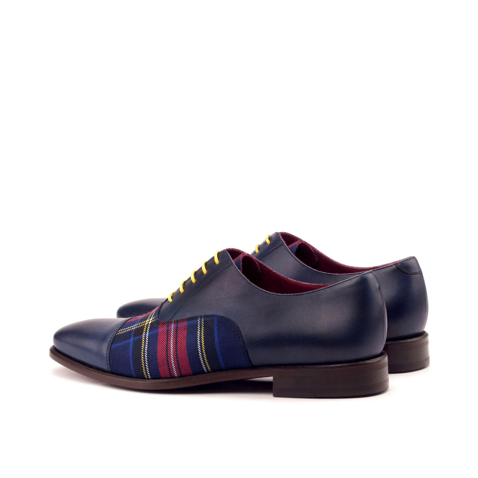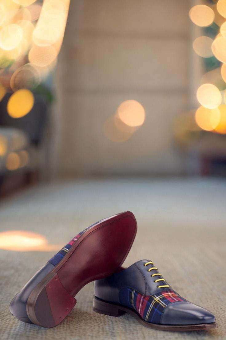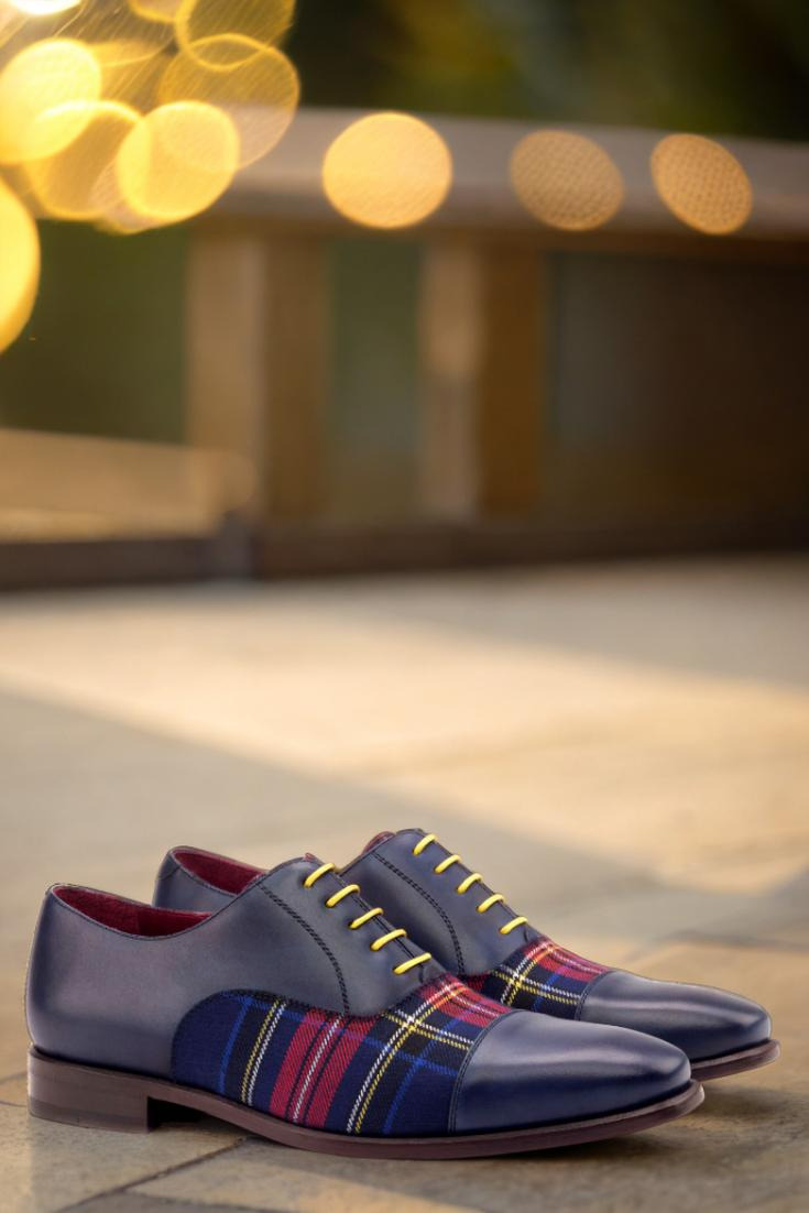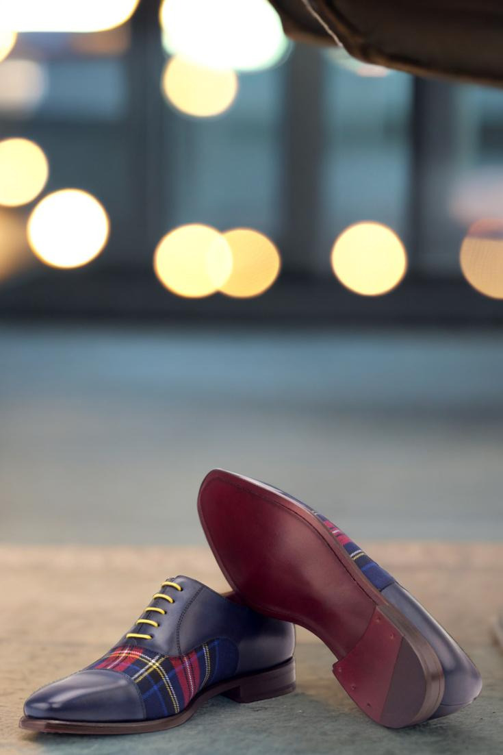 But the beauty doesn’t stop there. The vamp showcases a stunning tartan wool pattern that adds a unique twist to this timeless shoe. The navy blue painted calf vamp tab and base provide a sleek and polished finish, while the tartan wool tongue adds an unexpected pop of color and texture.
