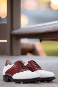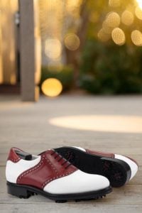 Upgrade your golf game with the Lincoln Ave. Saddle Shoe No. 8286 from Robert August. Experience the perfect balance of style, comfort, and performance on the course. Don’t settle for ordinary, choose extraordinary with this stunning saddle shoe. Order now and step up your golf game in style!